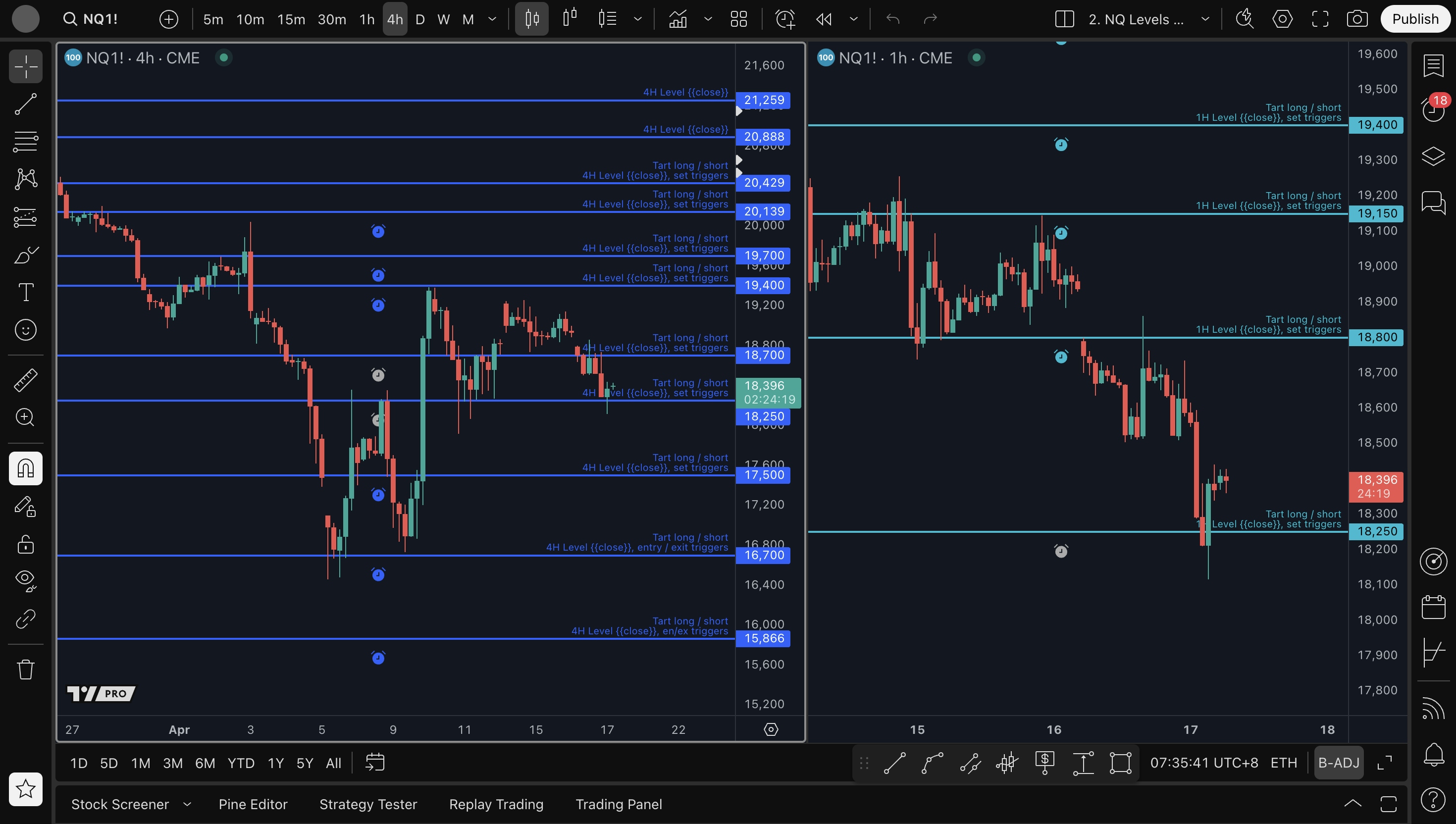 - 1H level long setup: 18250