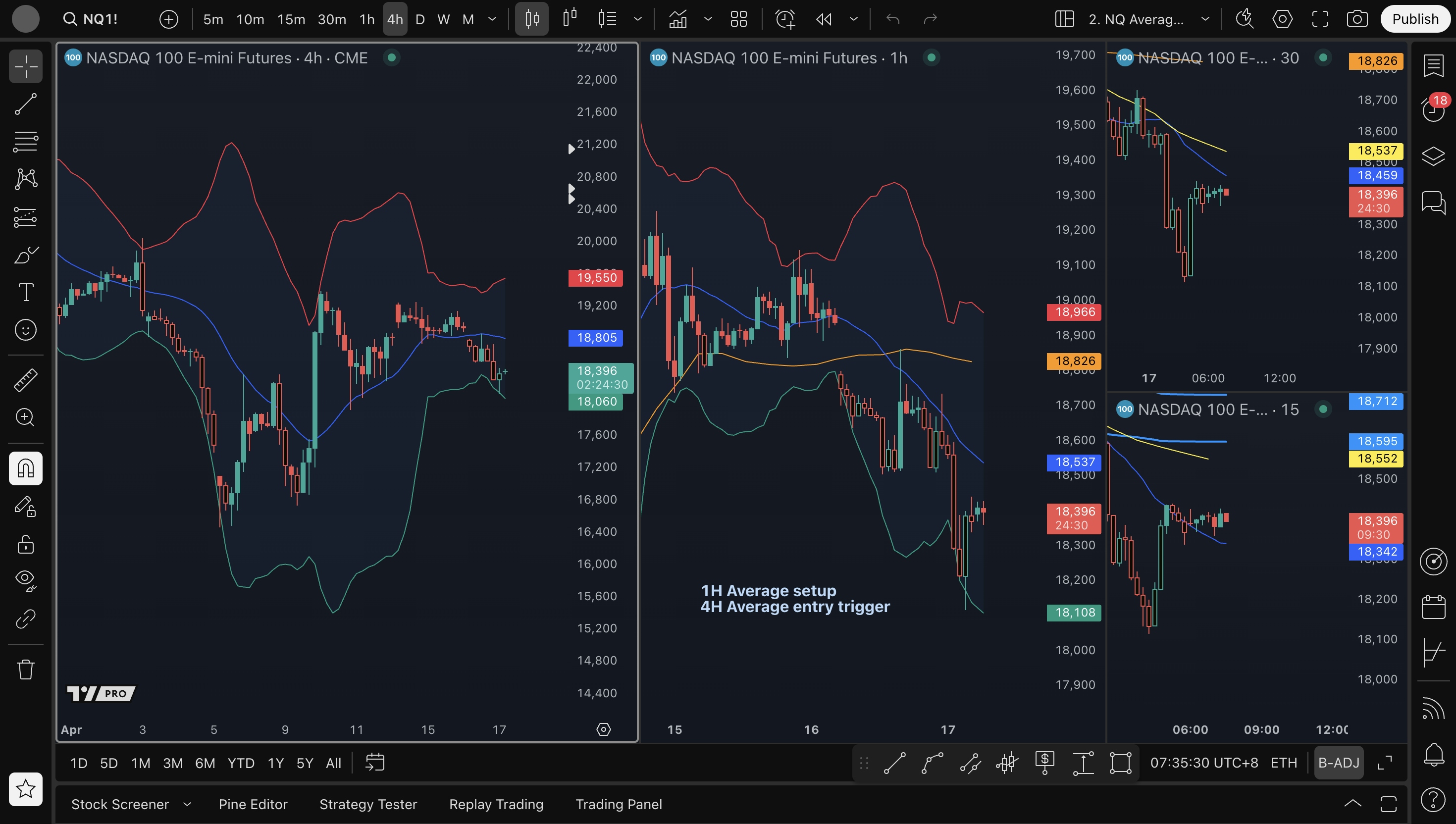 - 4H average long setup: