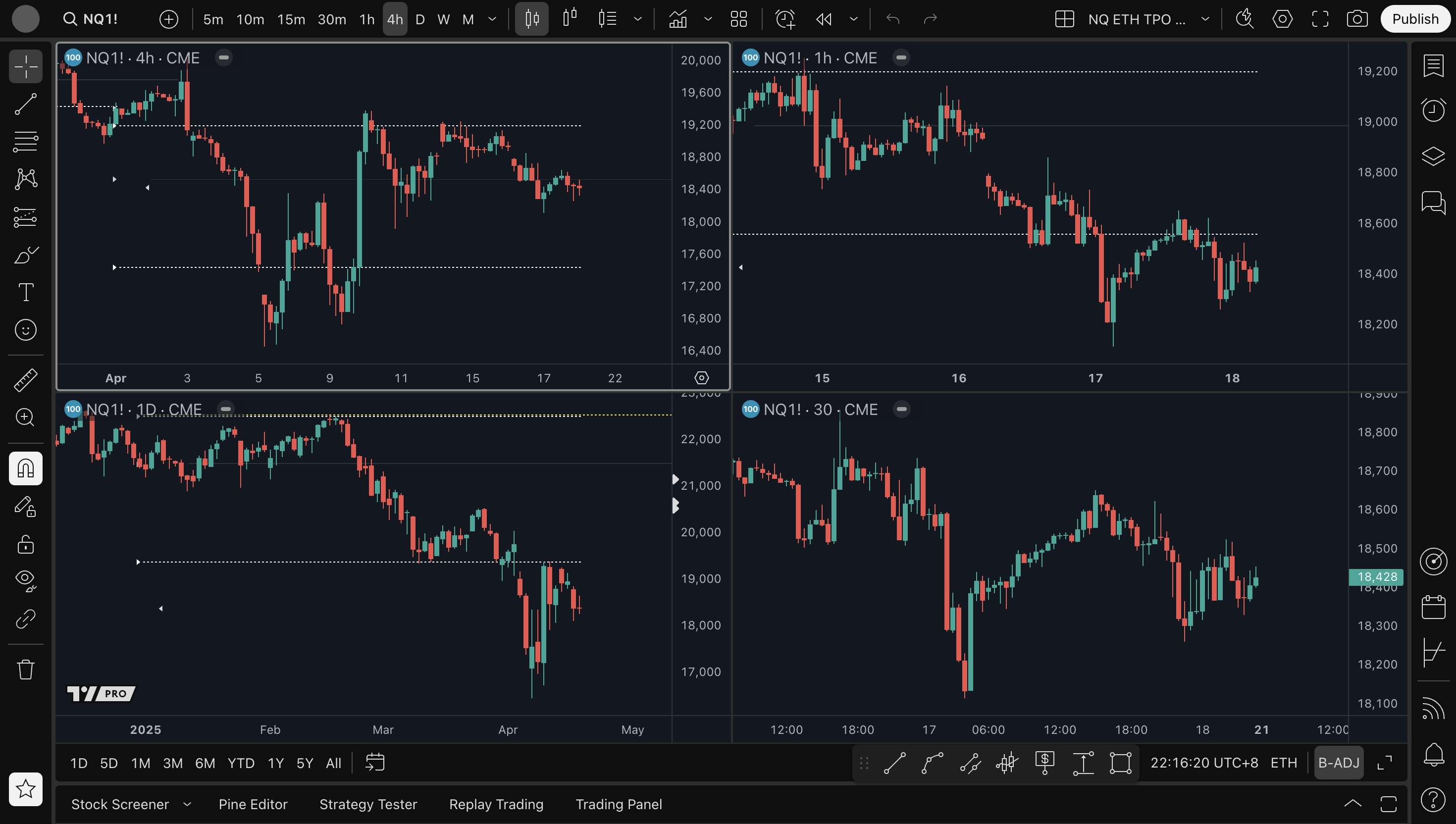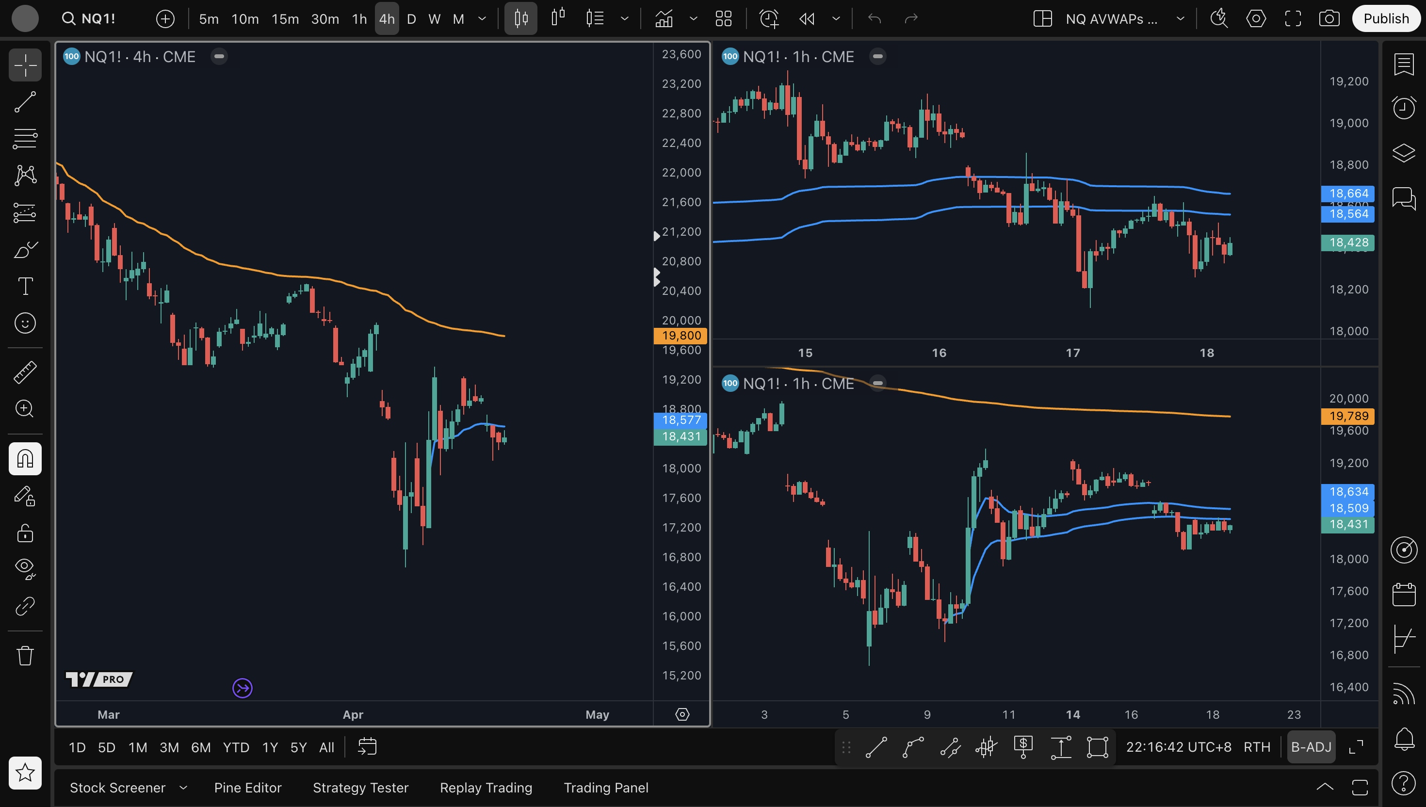- 4H average short setup: 18680