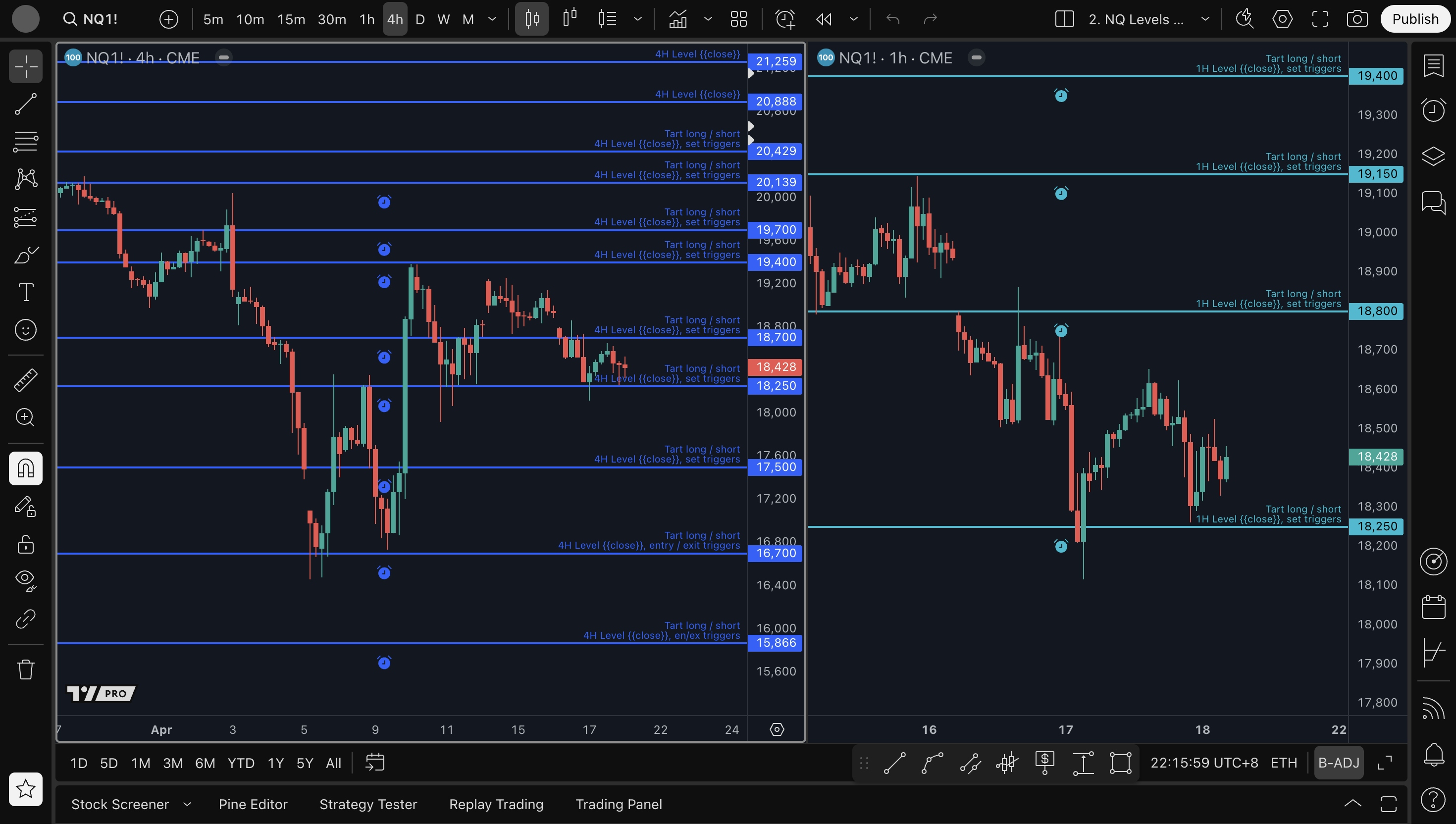 - 1H level long setup: 18250