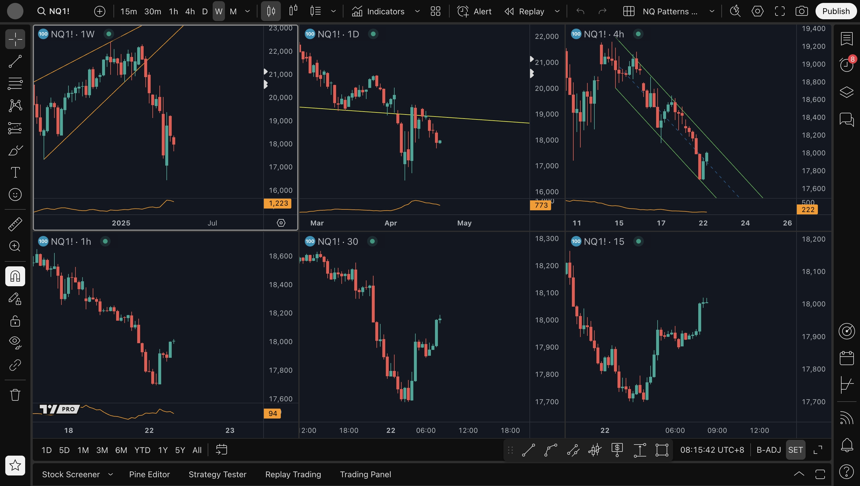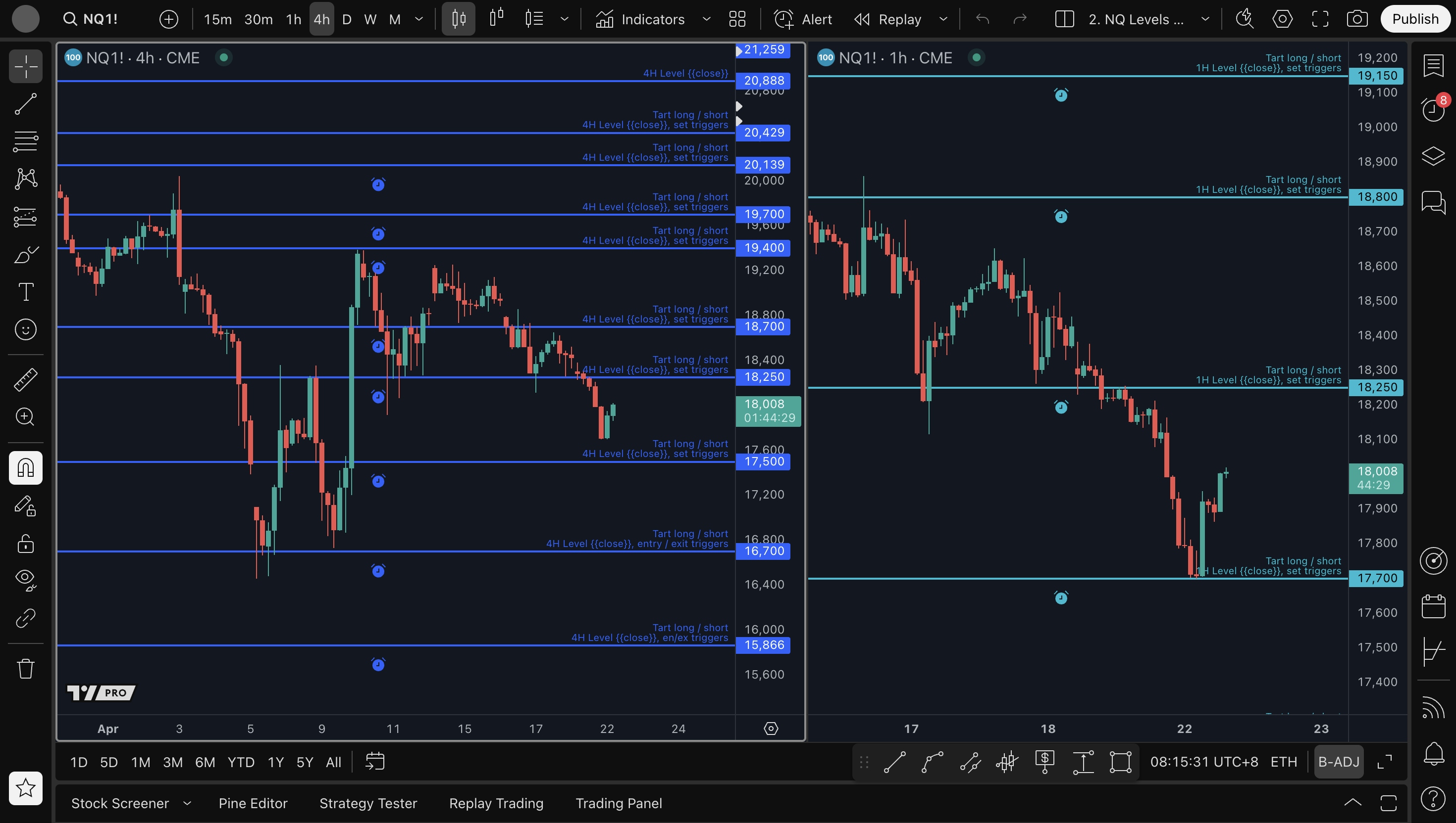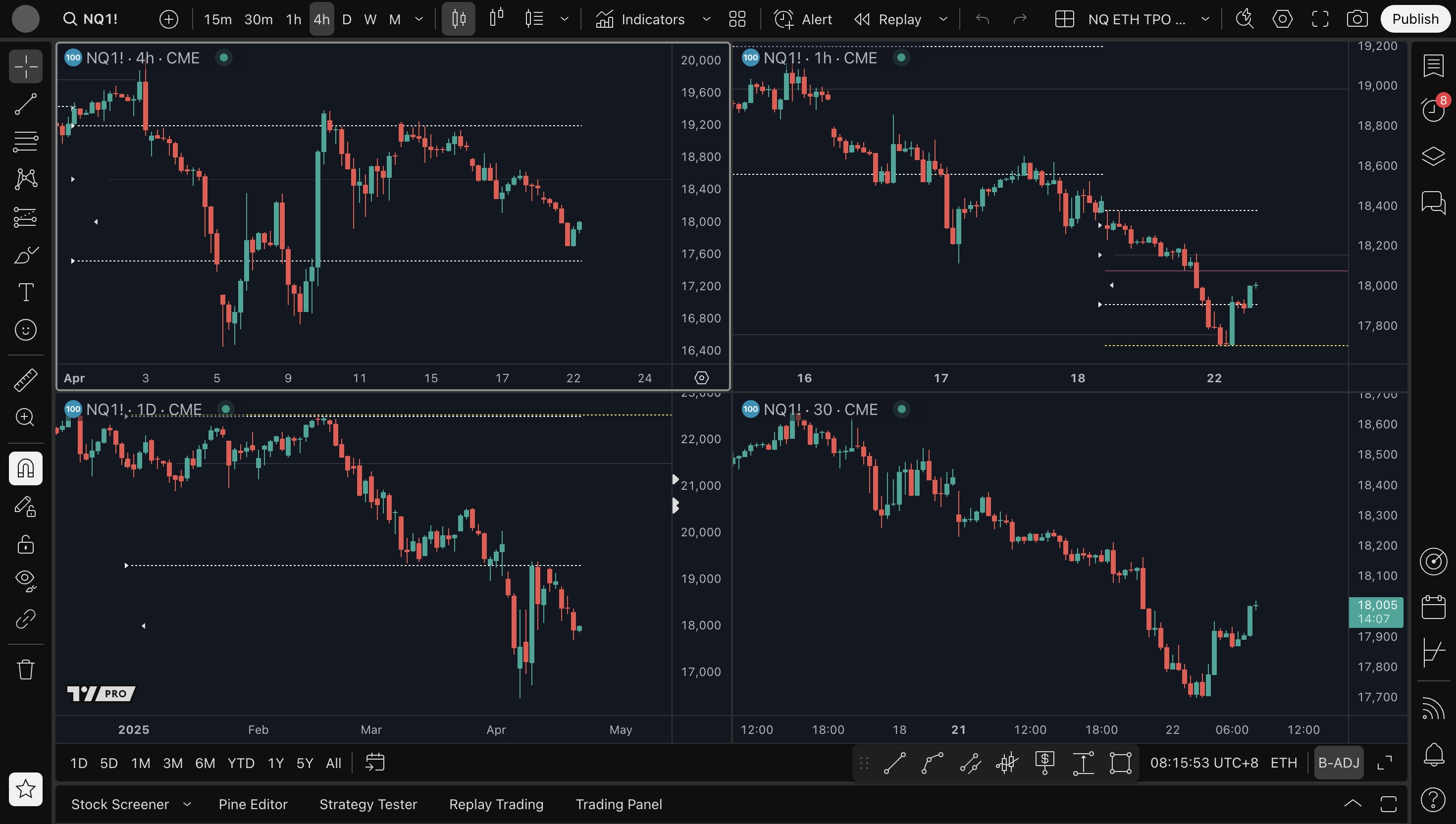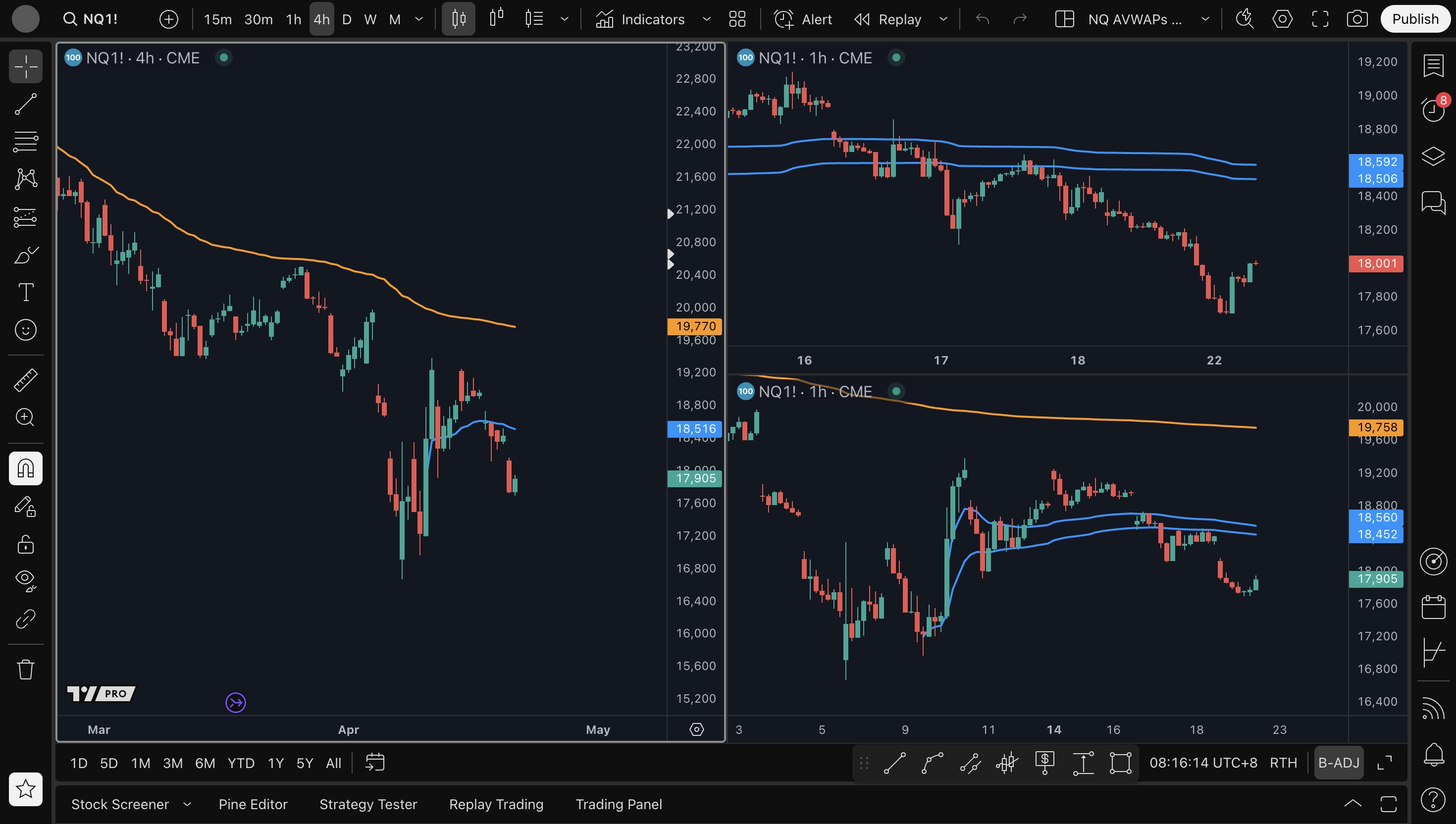 - 4H level short setup: 18250, 18700