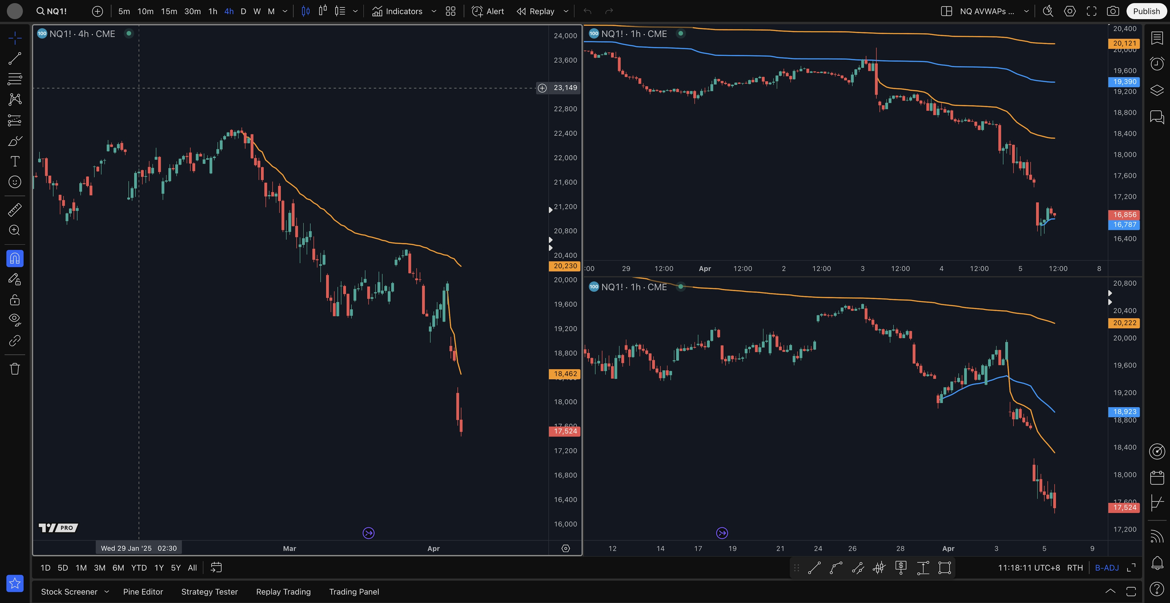 - 4H level short setup: 18930