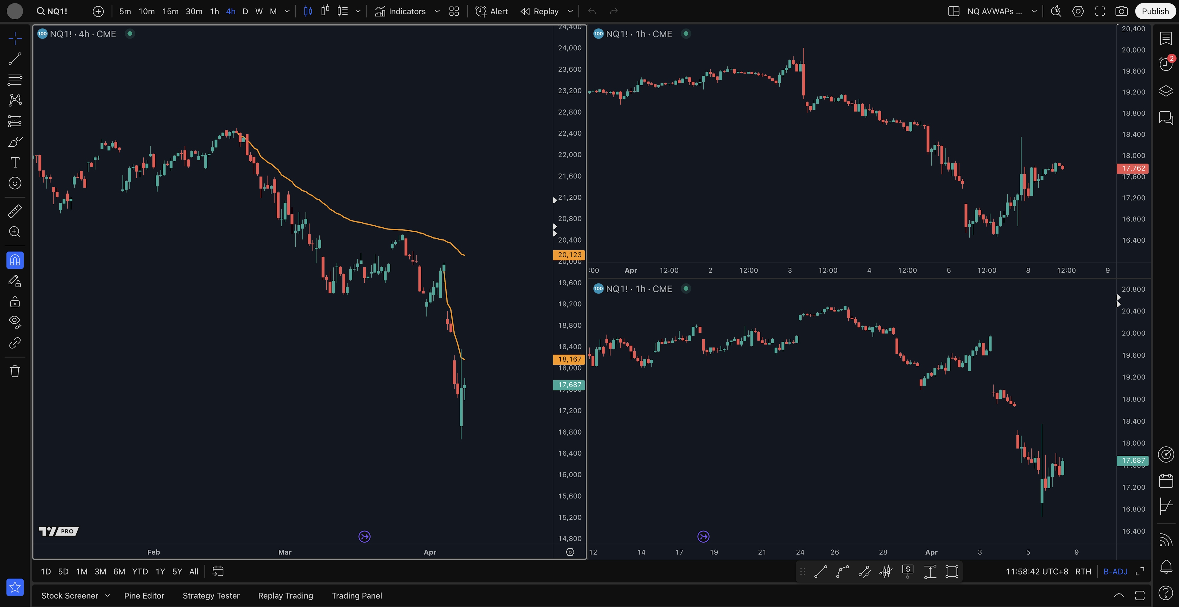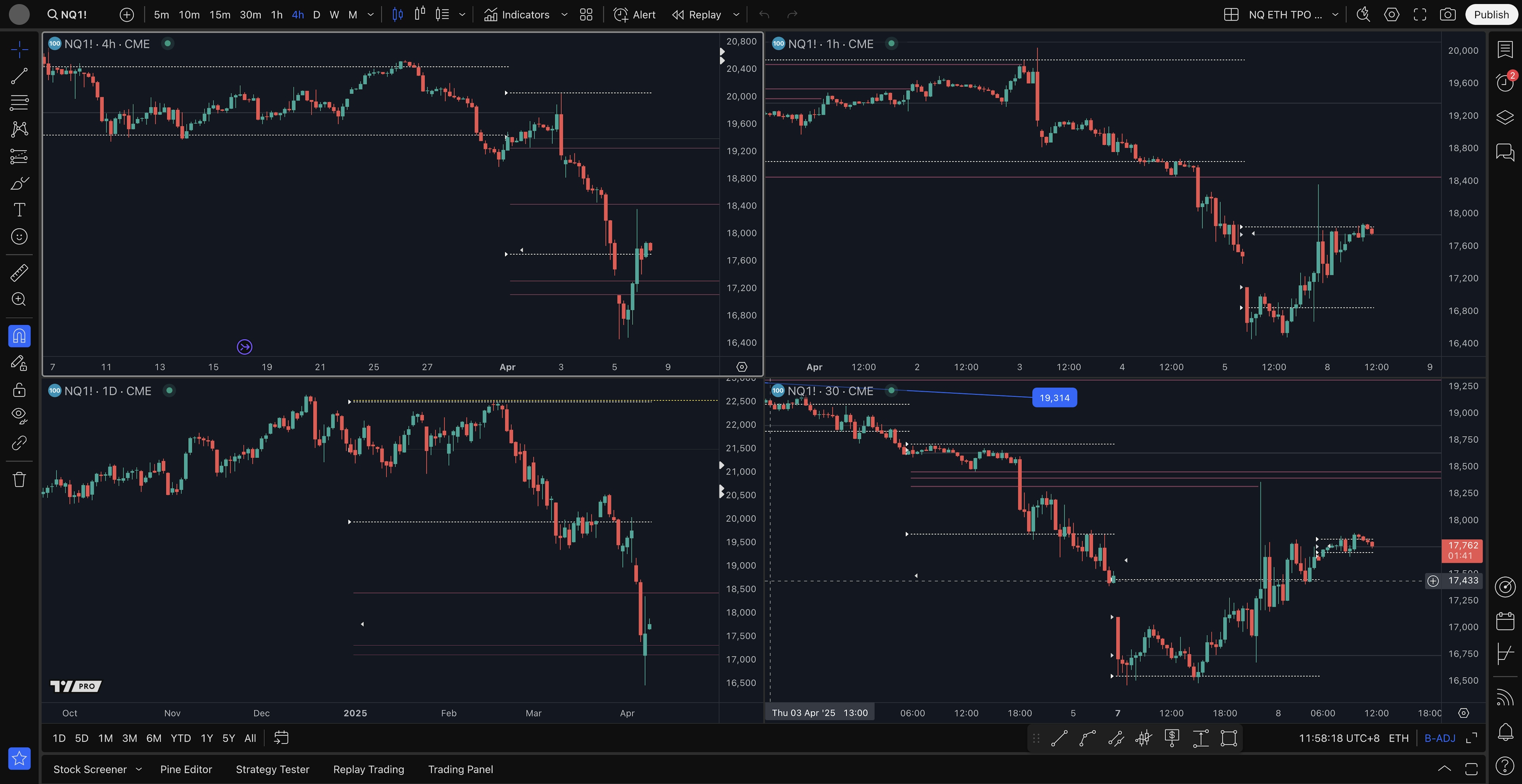 - 4H level short setup: 18003, 18400
