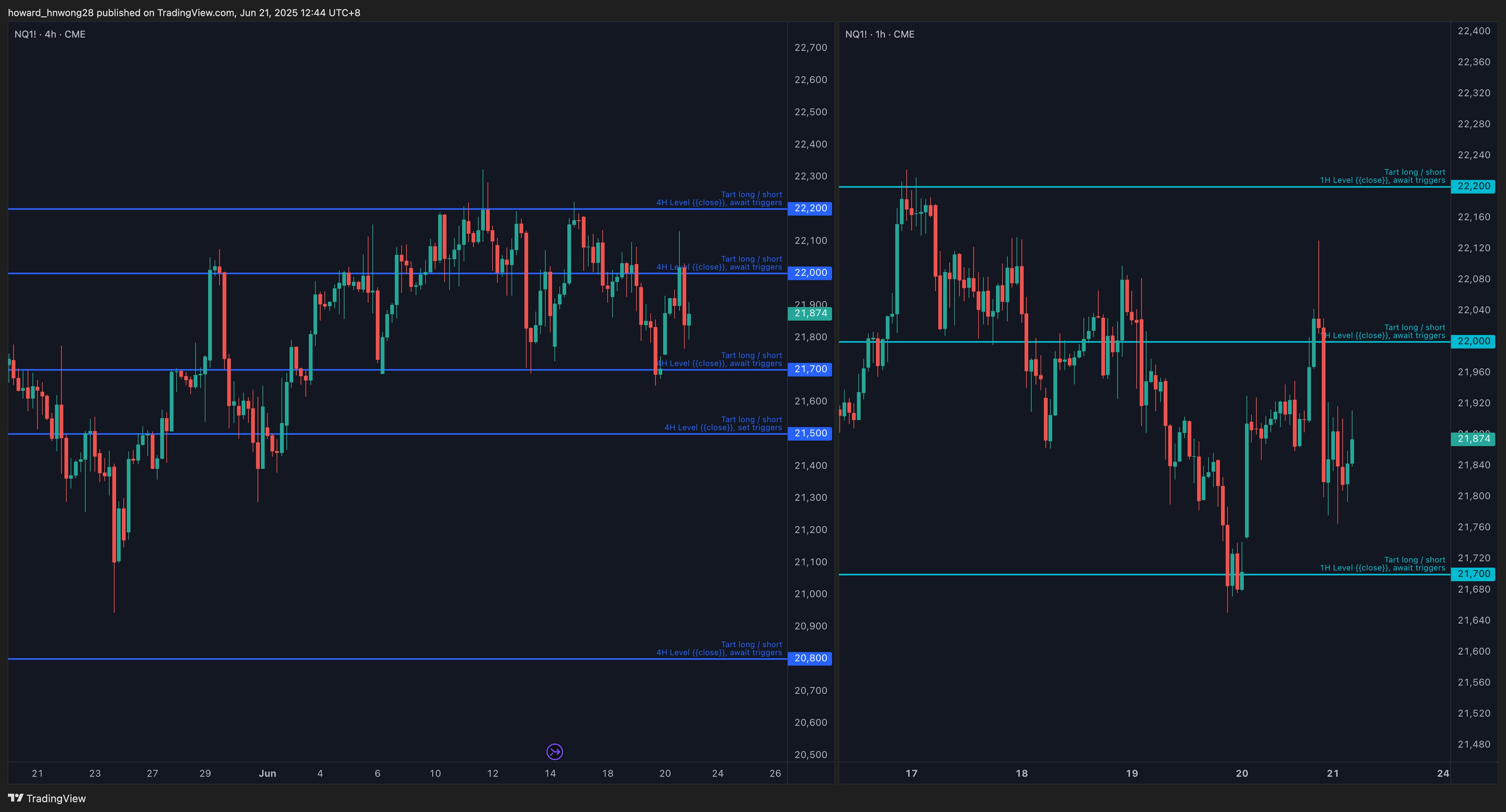 - 1H level long setup: 21700