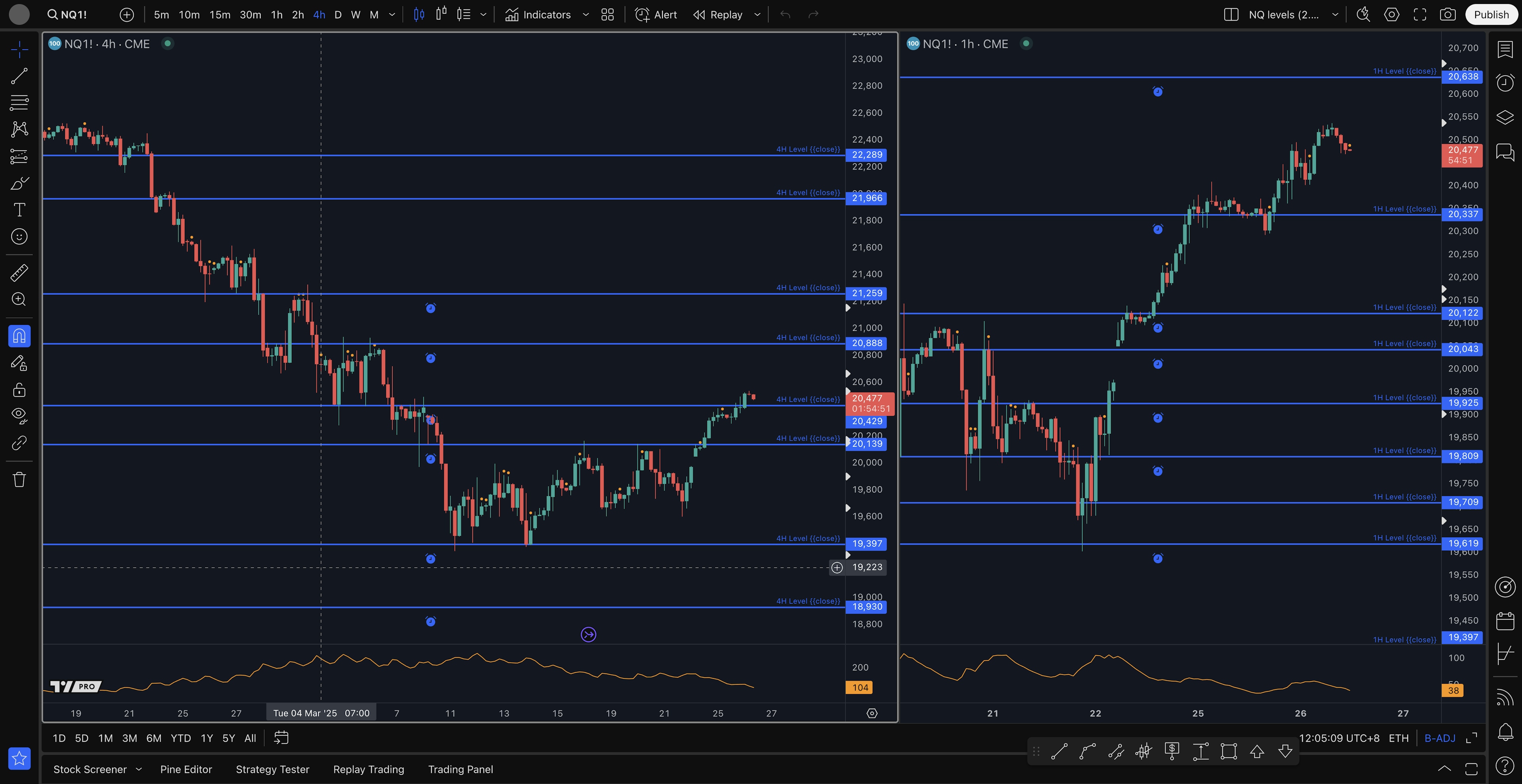 - 4H close, or 2H pin bar, or double 1H pin, or 1H inside bar / Hikk above or below level