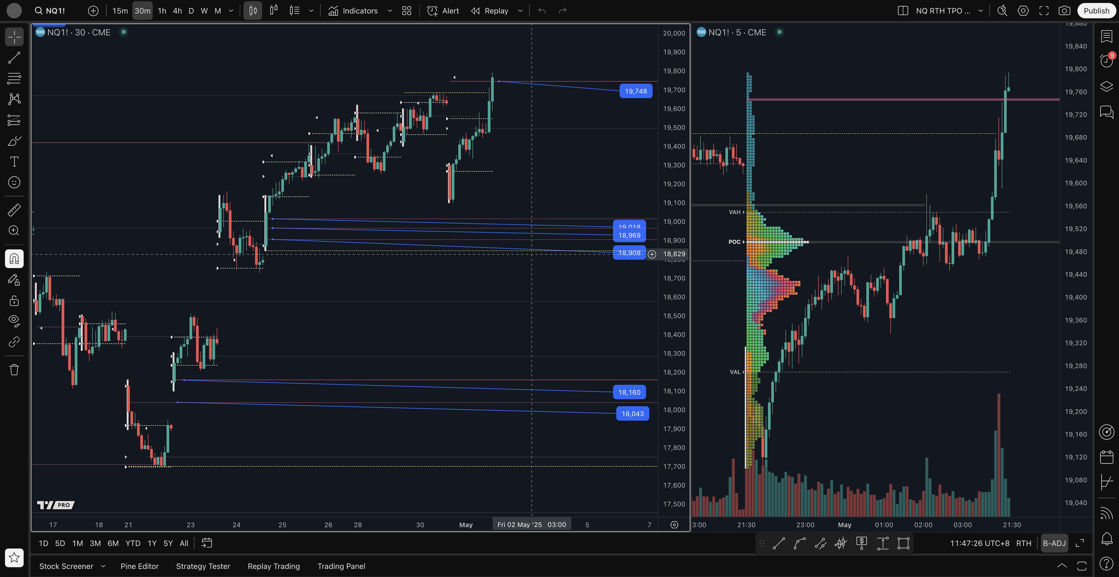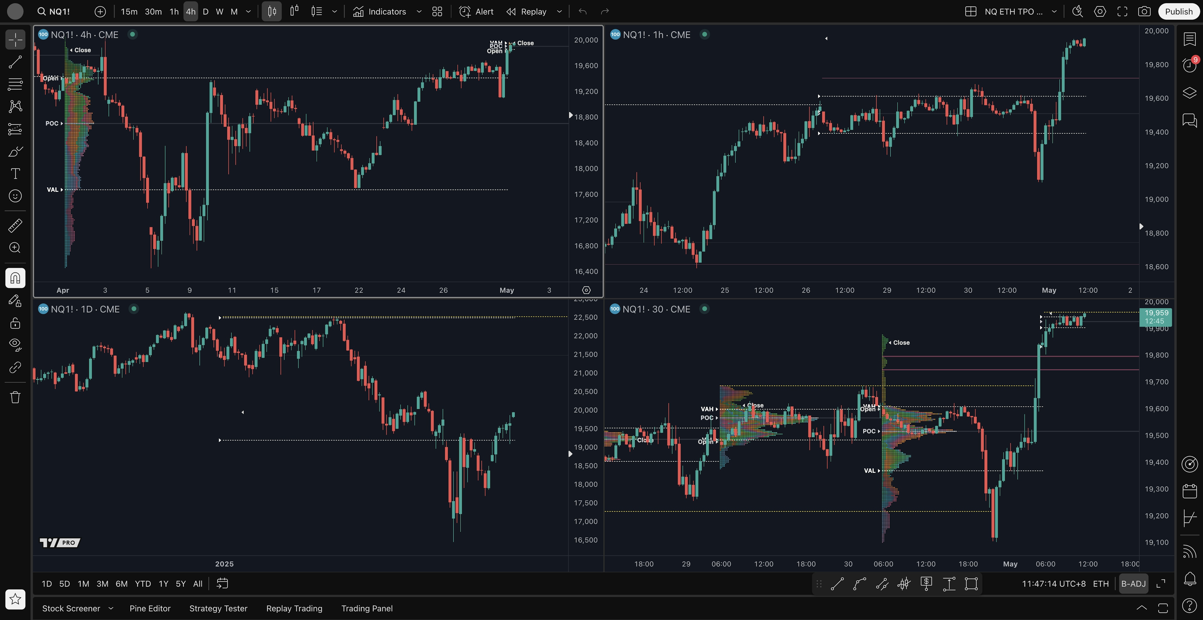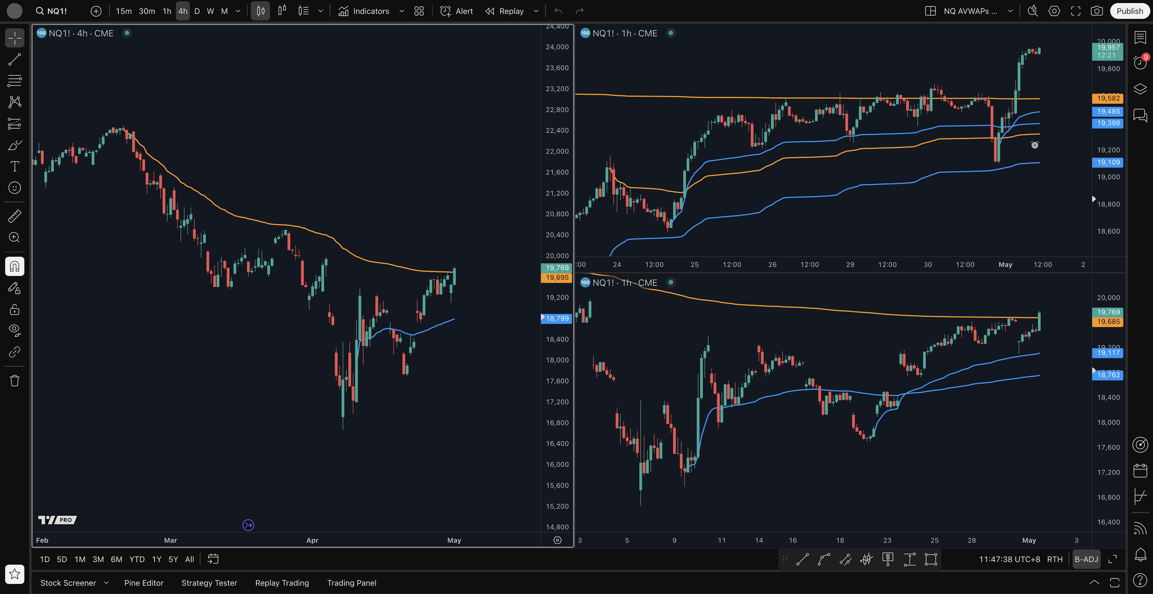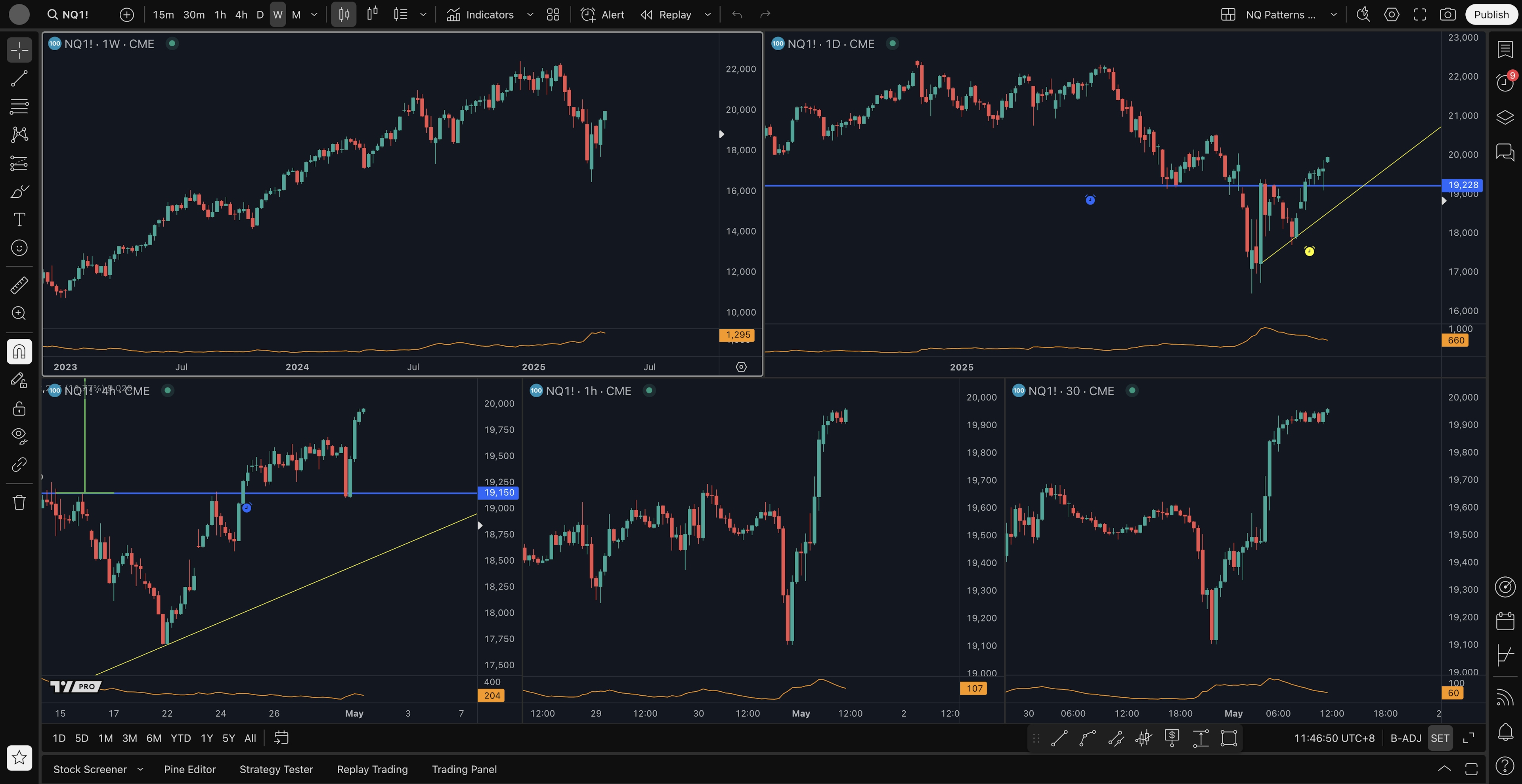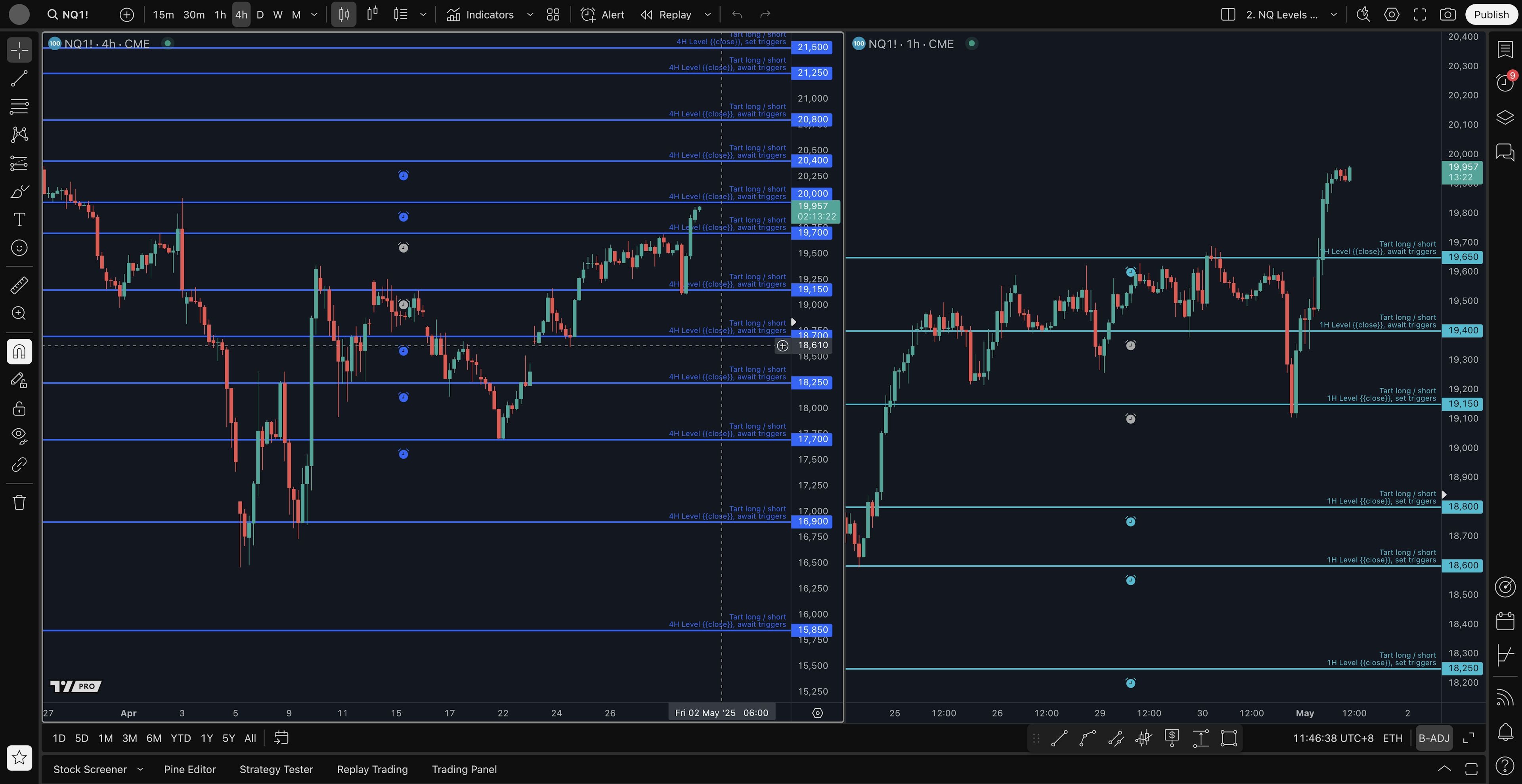 - 4H pattern long setup: daily ascending triangle broken out and retested