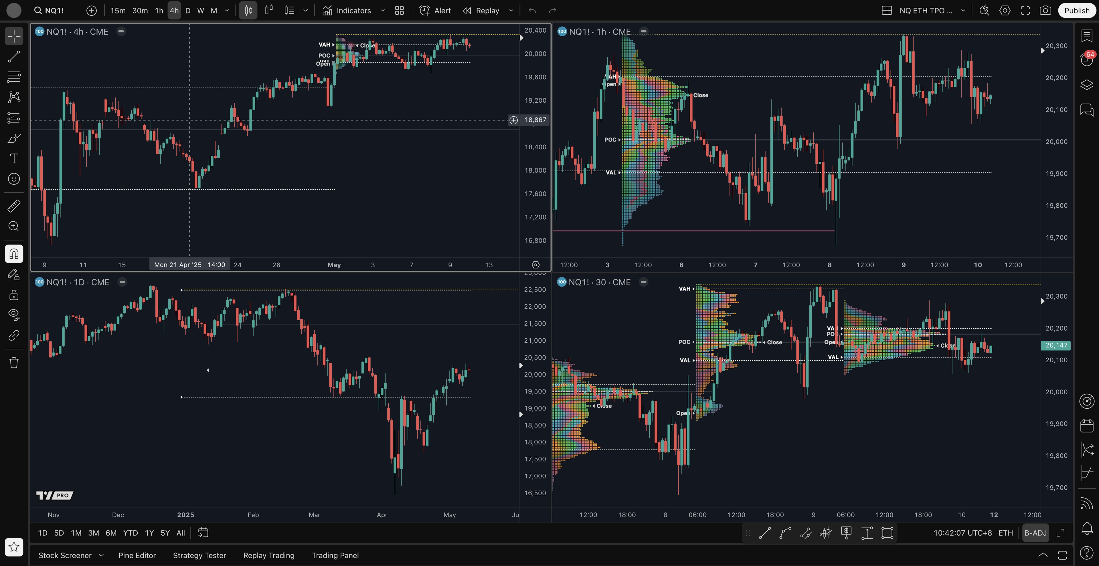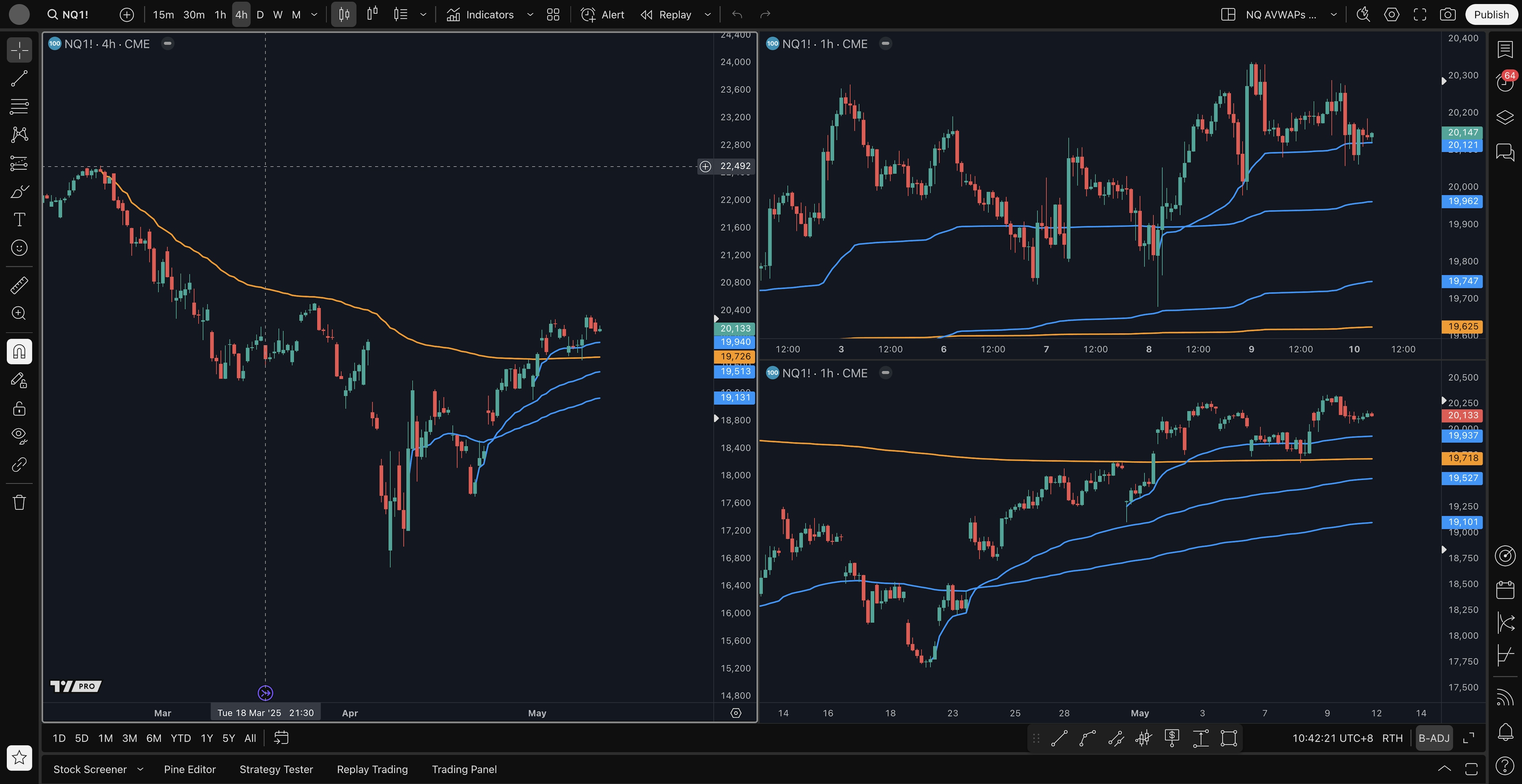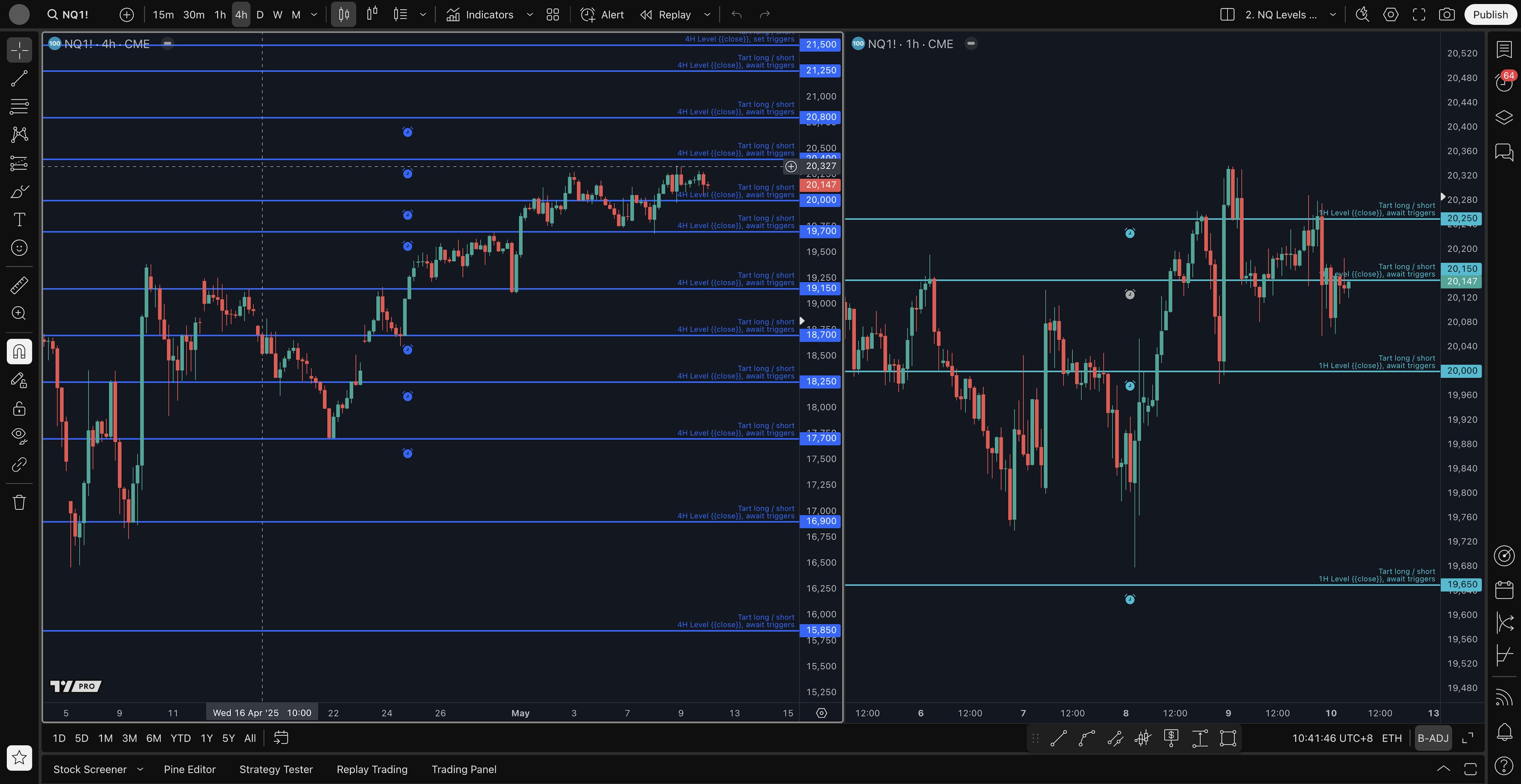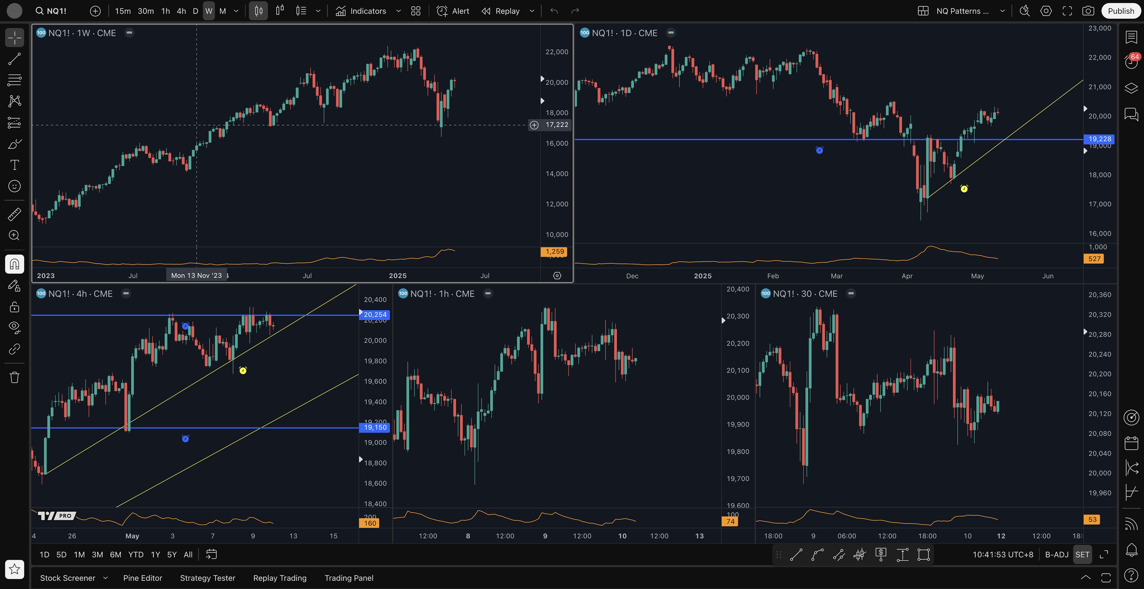- 4H pattern long setup: daily ascending triangle broken out and retested