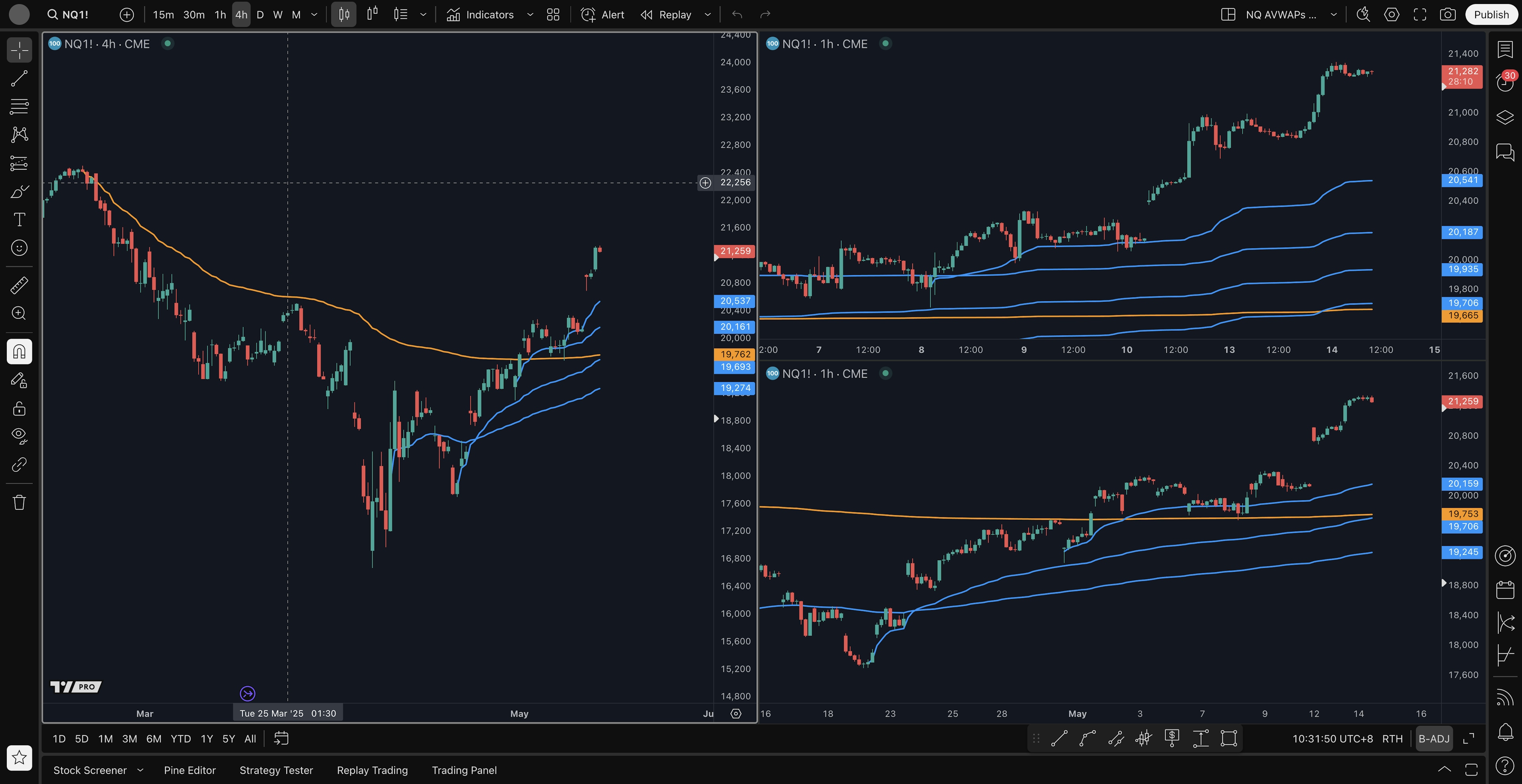 - 4H average long setup: 21000