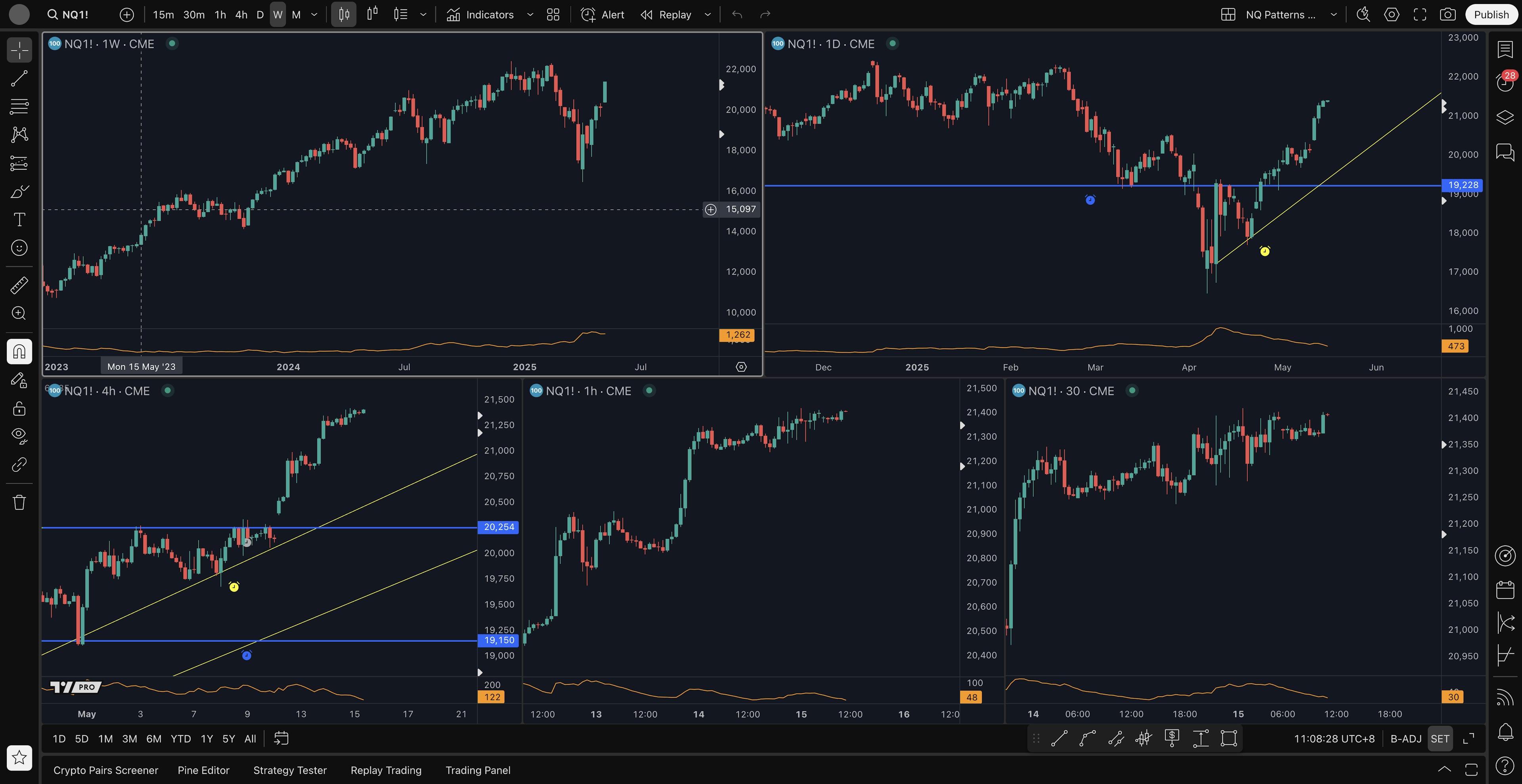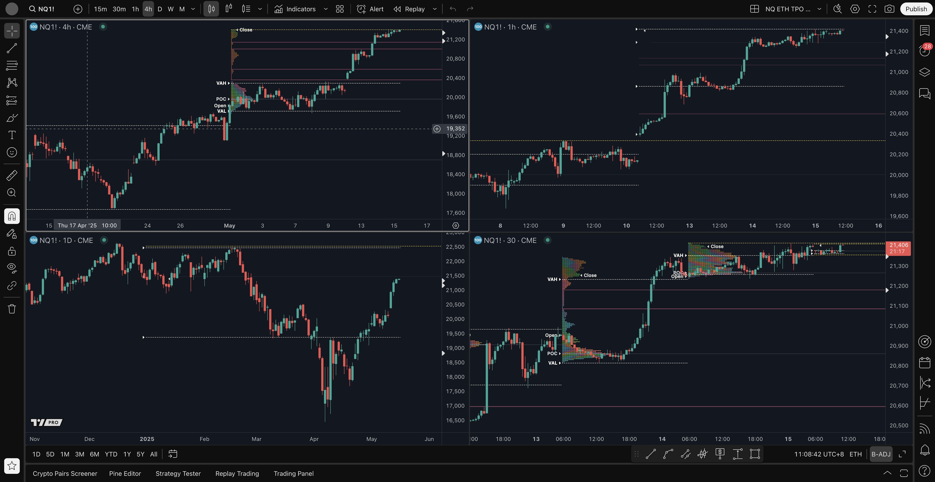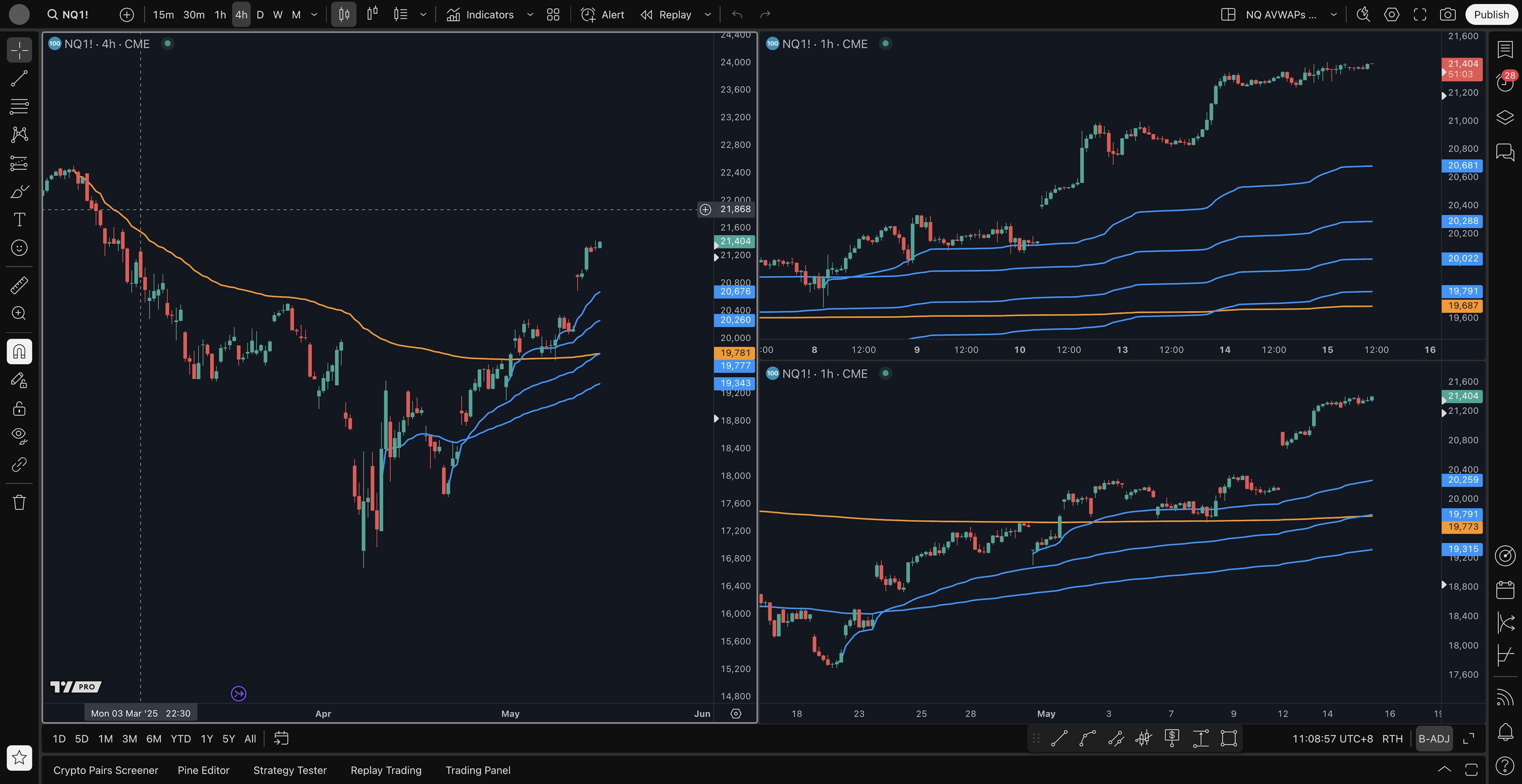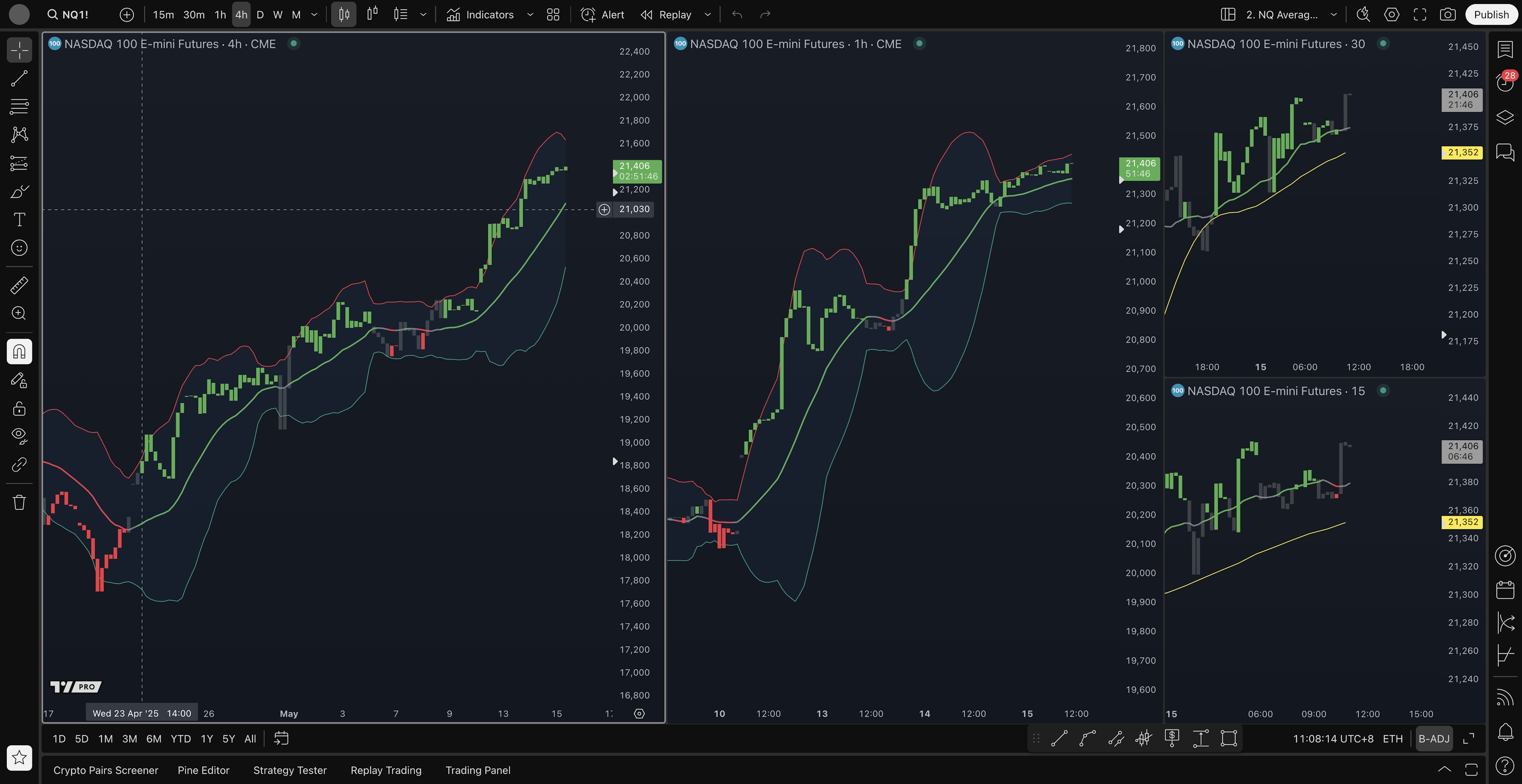 - 4H average long setup: 21200