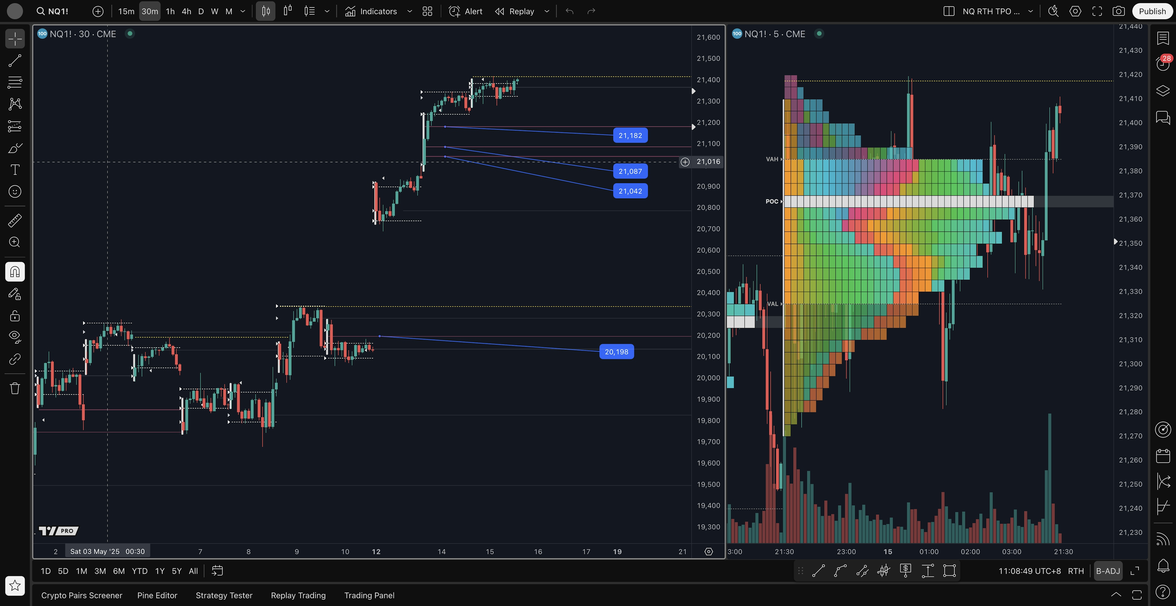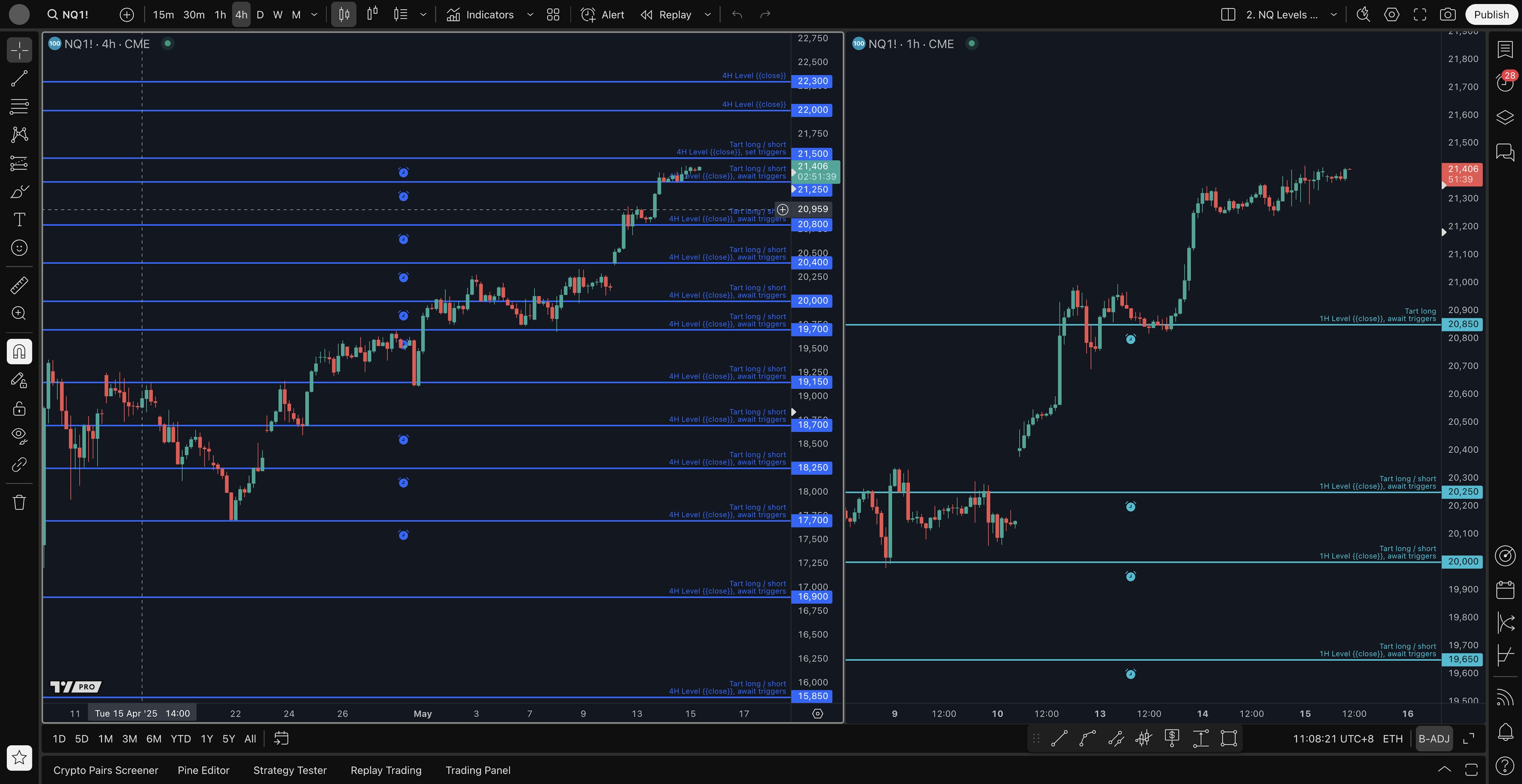 - 4H level long setup: 21250, 20800