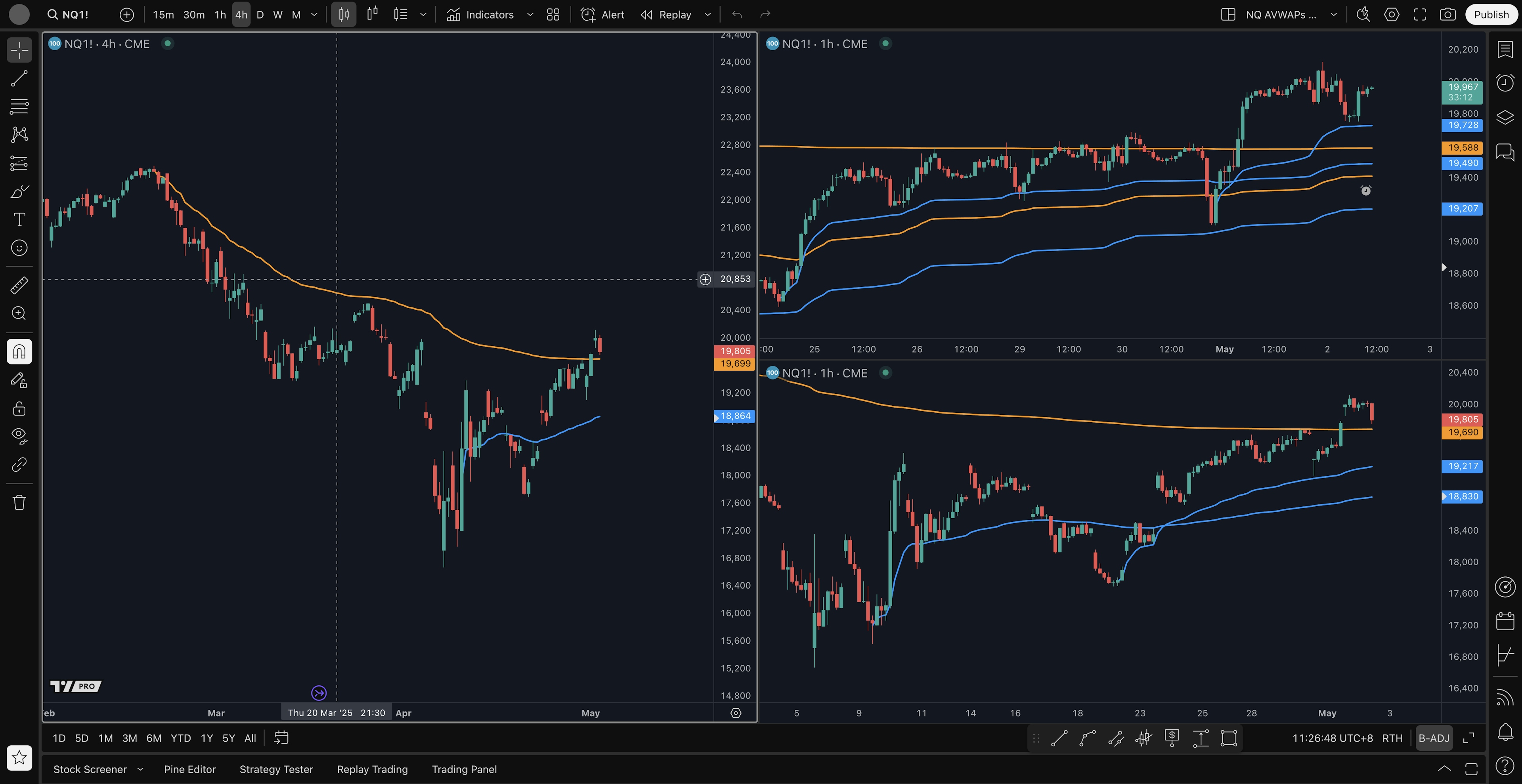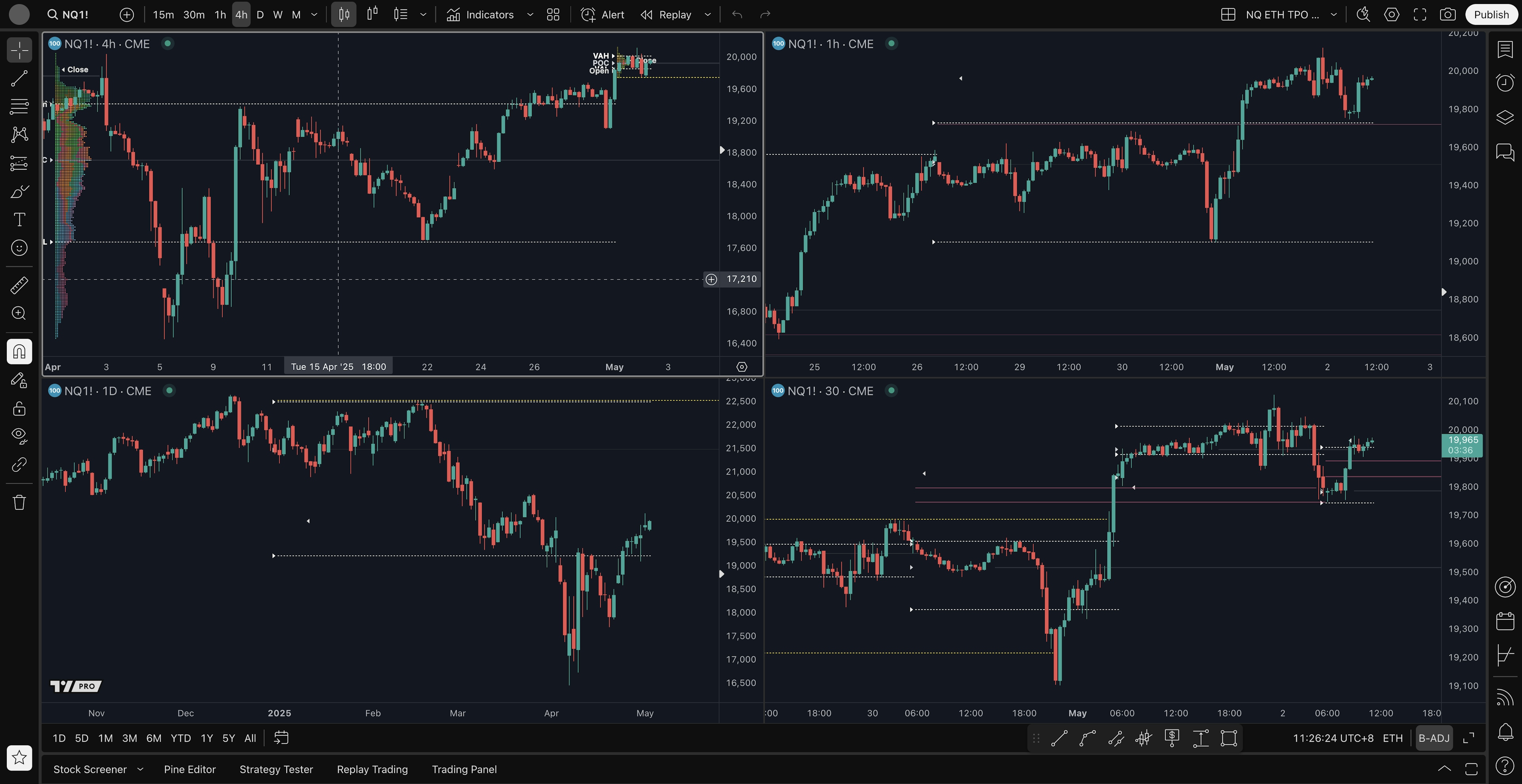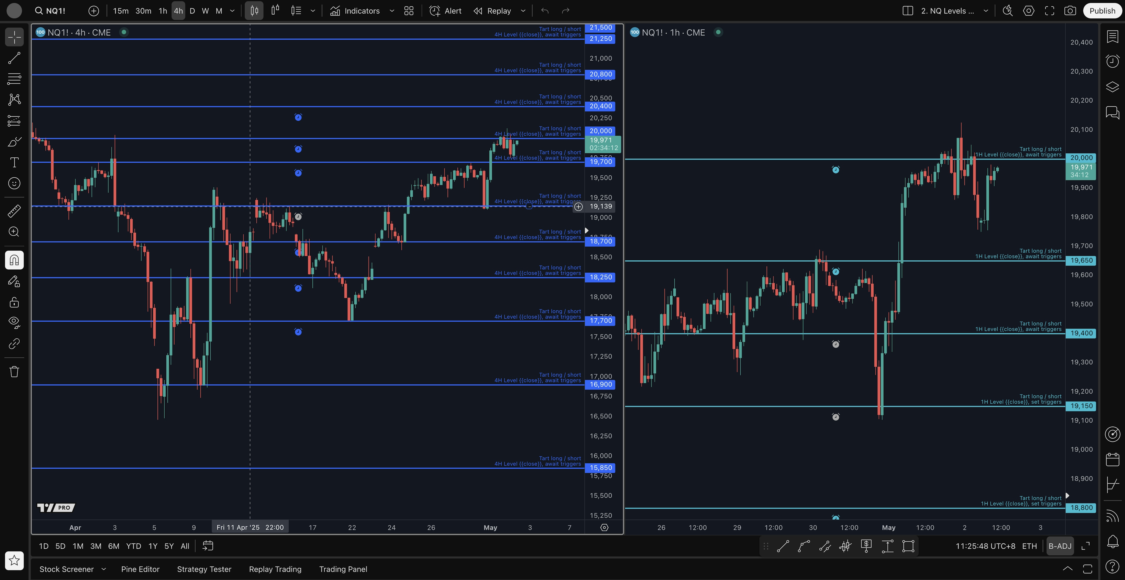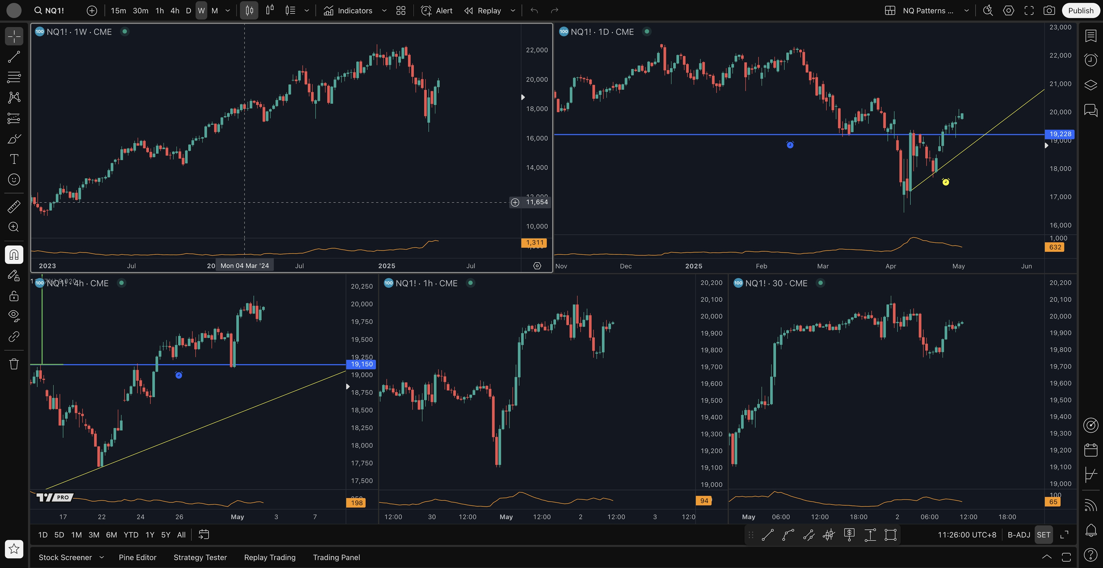 - 4H pattern long setup: daily ascending triangle broken out and retested