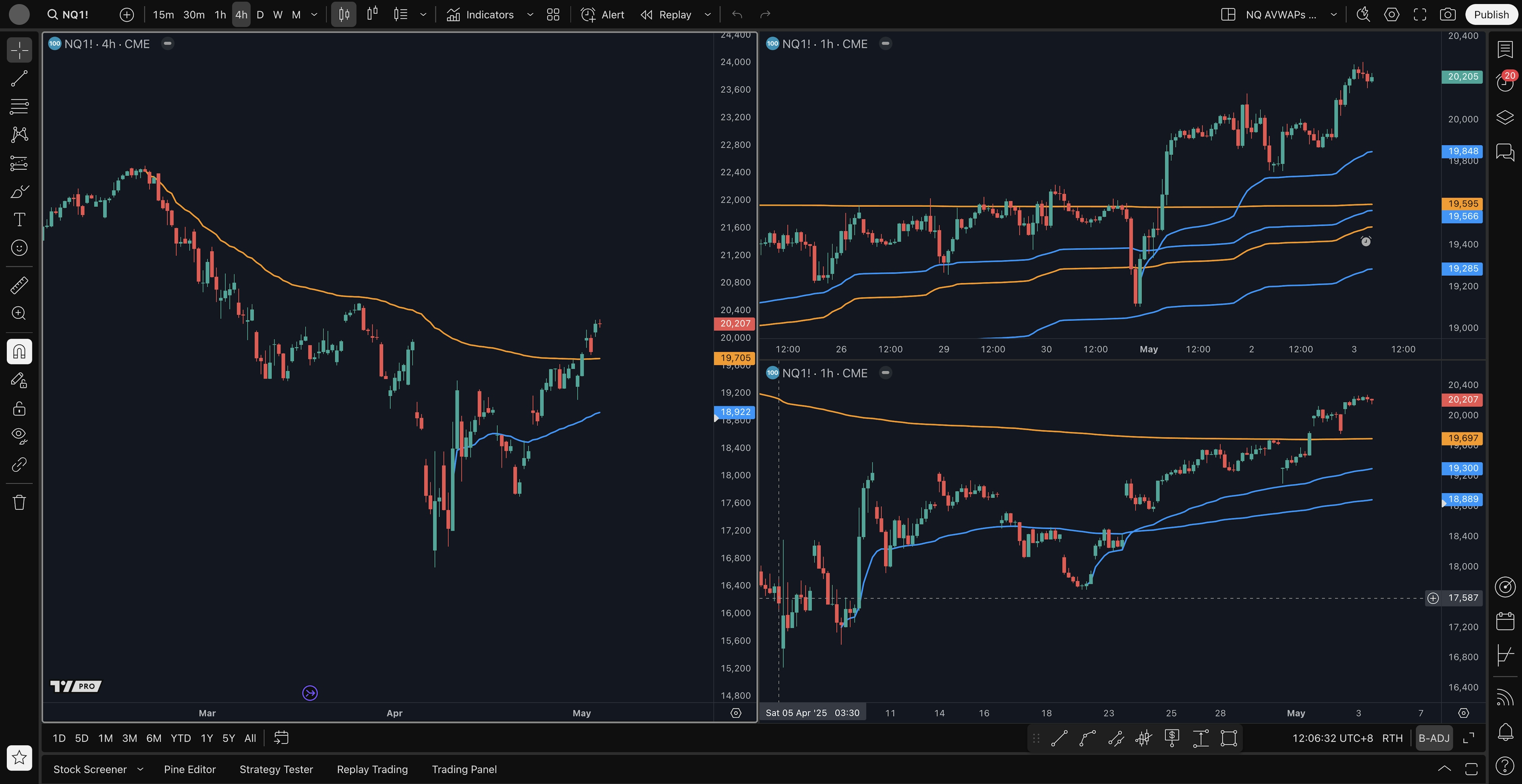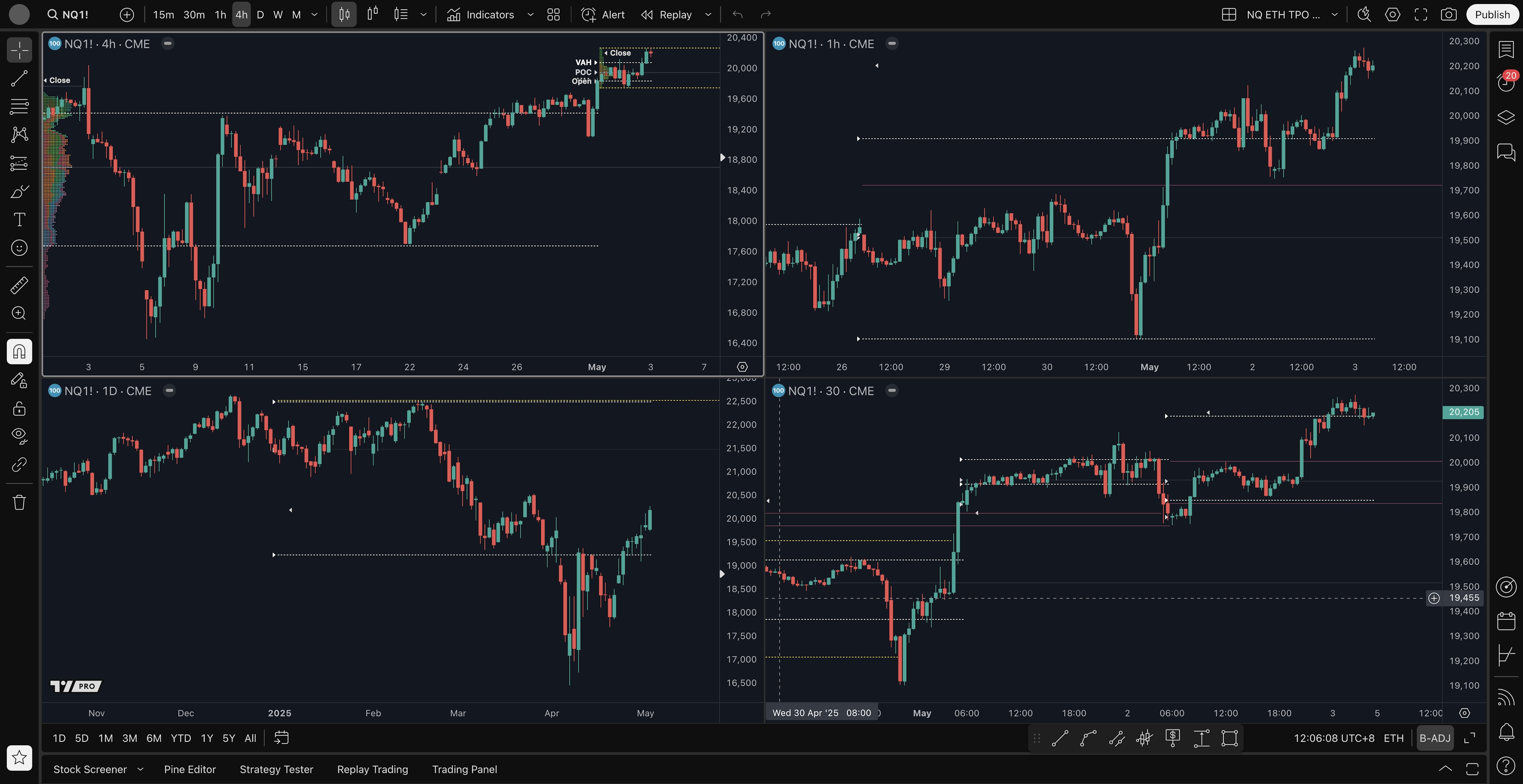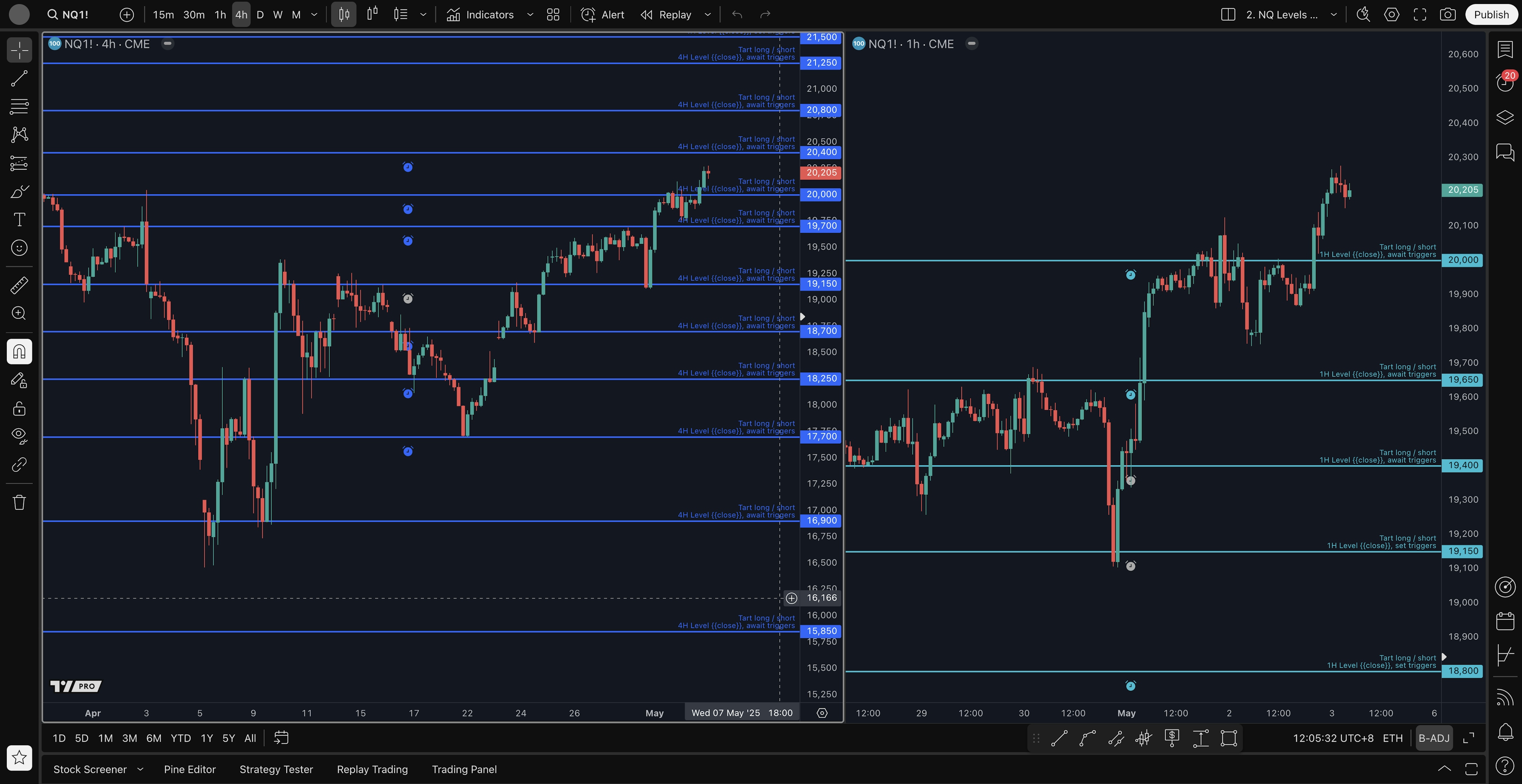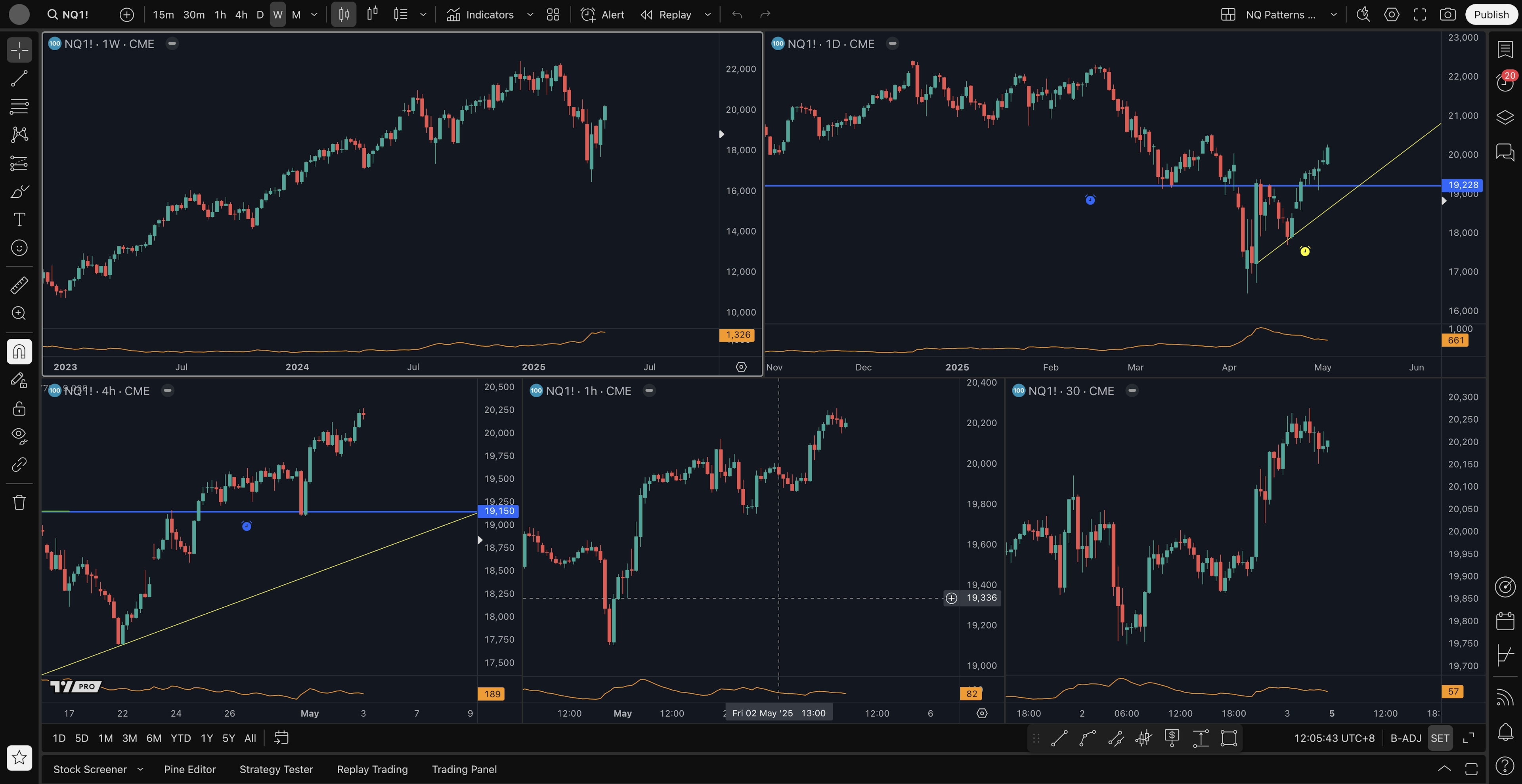 - 4H pattern long setup: daily ascending triangle broken out and retested