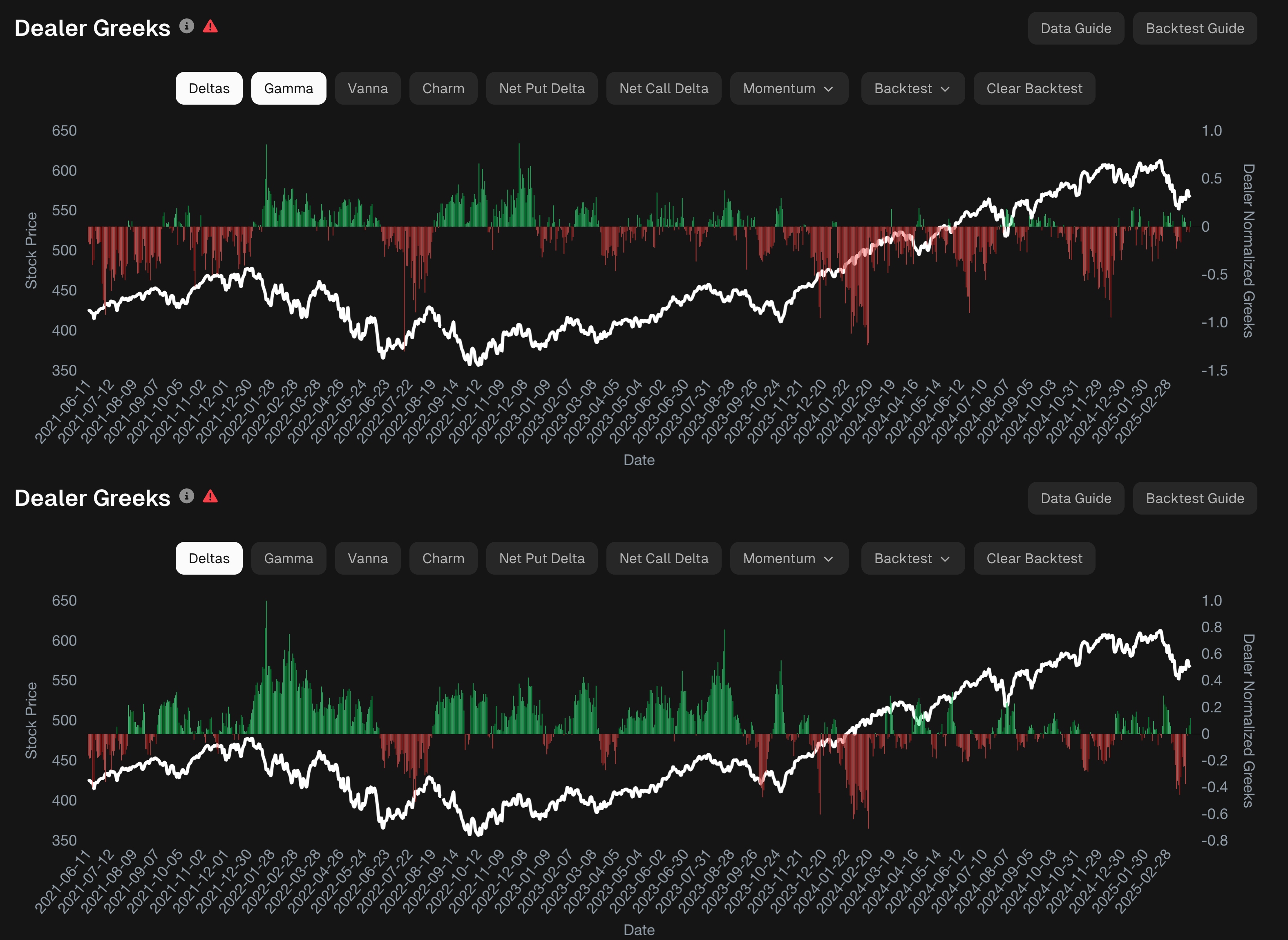 SPY dealer greeks - delta slightly bearish, gamma slightly bearish