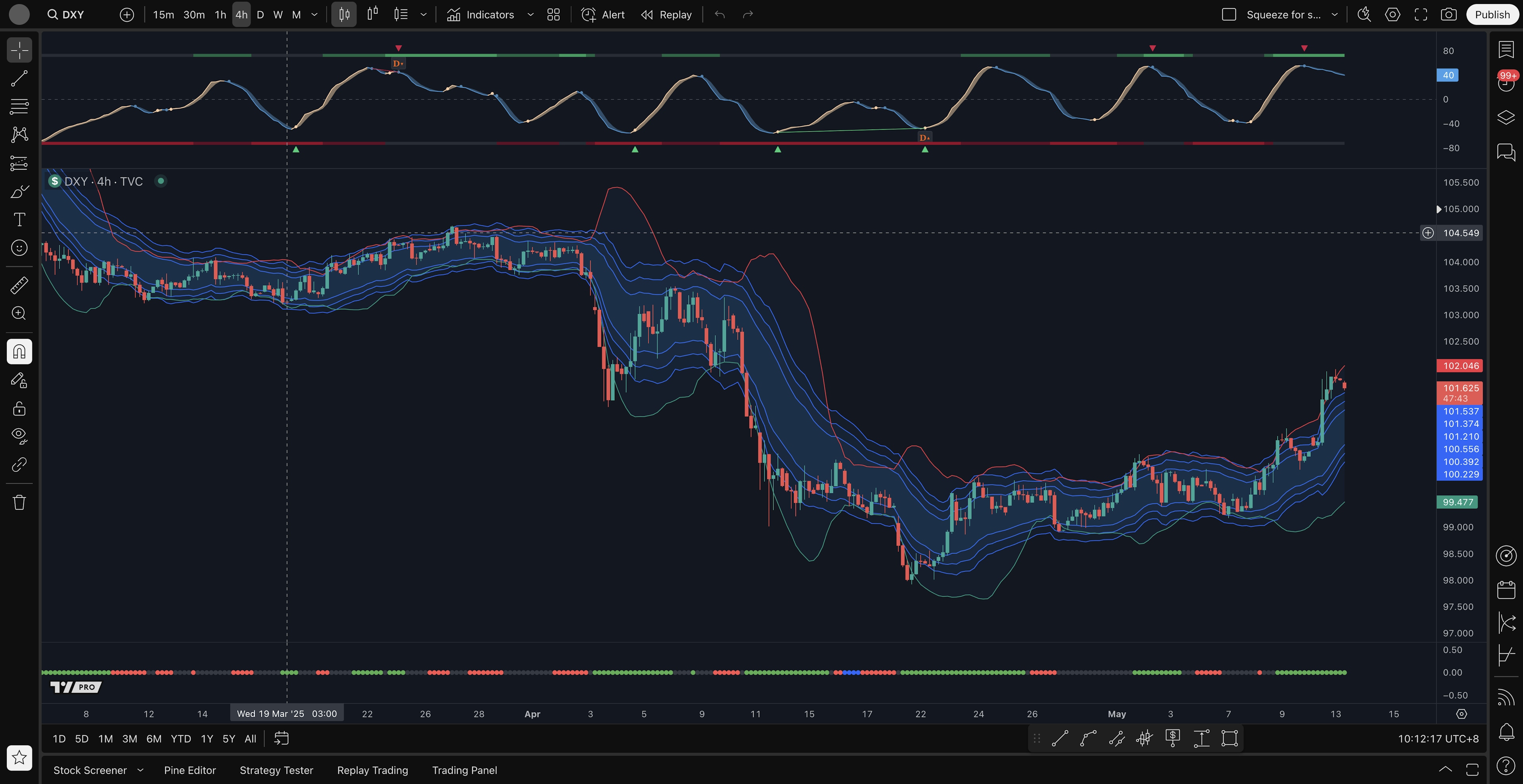 DXY 4H bullish squeeze met with sell signal, did not stop price action